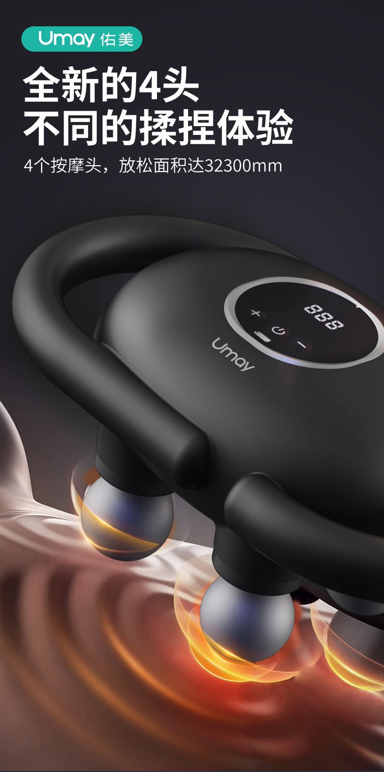 商品名称:(巨邦佑)BJ+Umay佑美筋膜枪四头JMQ012-01 专业理疗筋膜枪大面积大容量电池长久续航