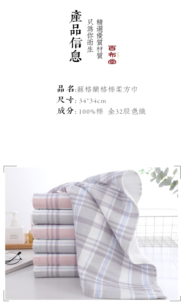 商品名称:(中科惠橙)非遗 · 百布堂苏格兰格棉柔方巾 35*35cm 5条