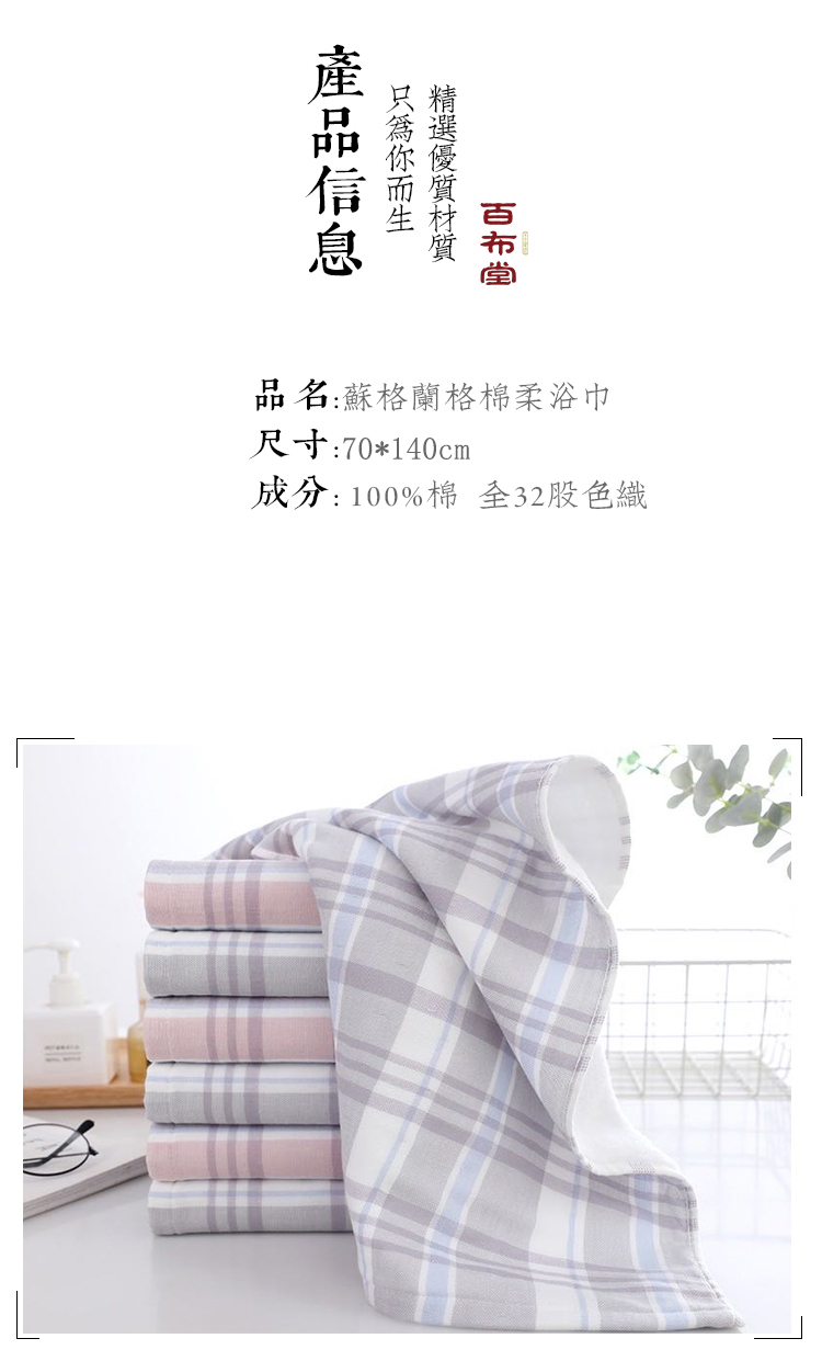 商品名称:(中科惠橙)非遗 · 百布堂苏格兰格棉柔浴巾 70*140cm