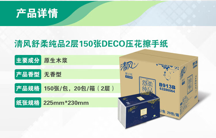 商品名称:(超运·禾贸)清风抽纸擦手纸2层150抽20包整箱(商用)【51001450 】 L码 厨房餐厅卫生间商务商用酒店 整箱