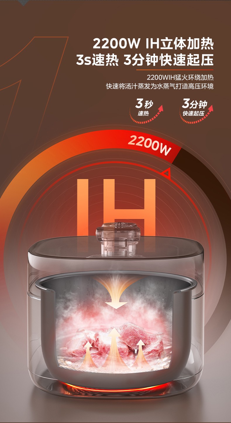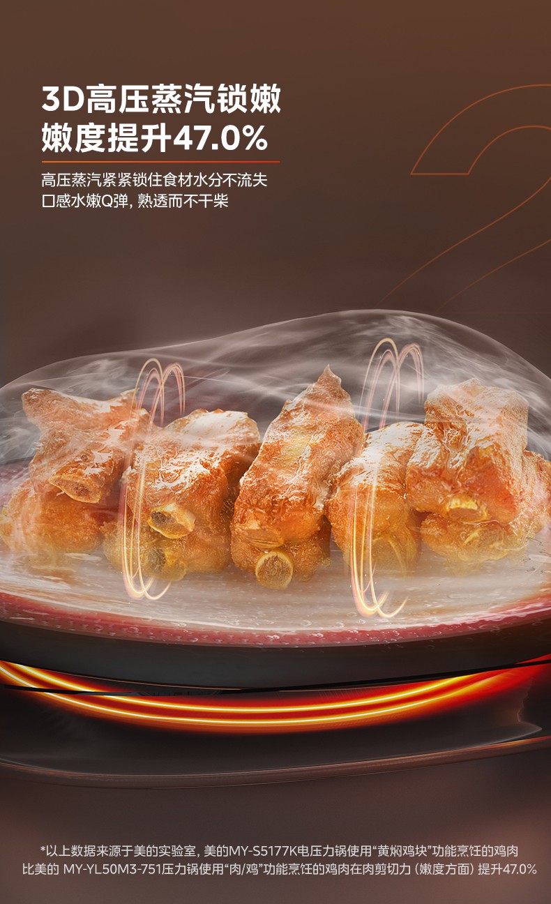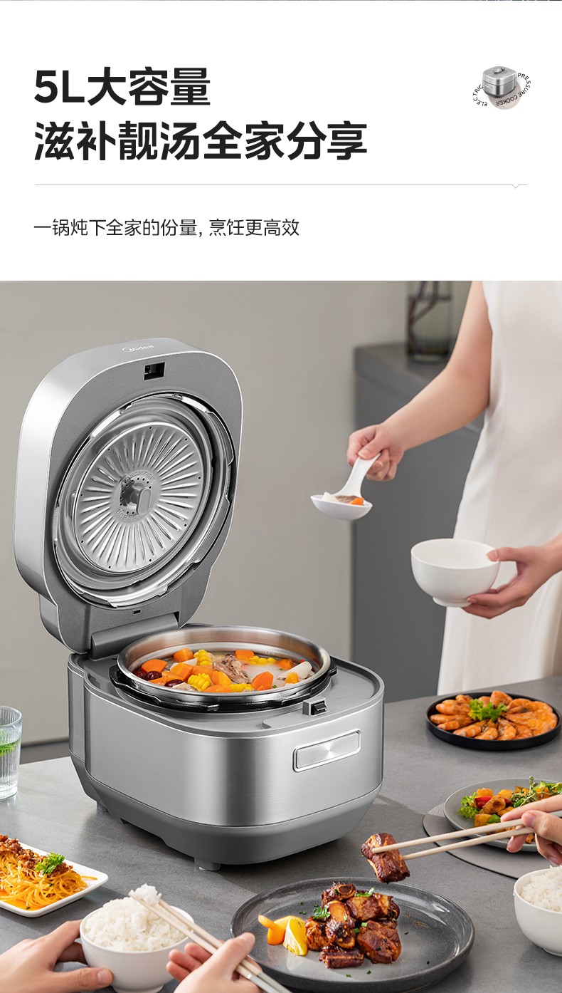 商品名称:(巨邦佑)R+美的(Midea)0涂层电压力锅S5177K 大容量家用速嫩感双胆IH全自动智能预约煲汤煮饭电饭煲高压锅 5L