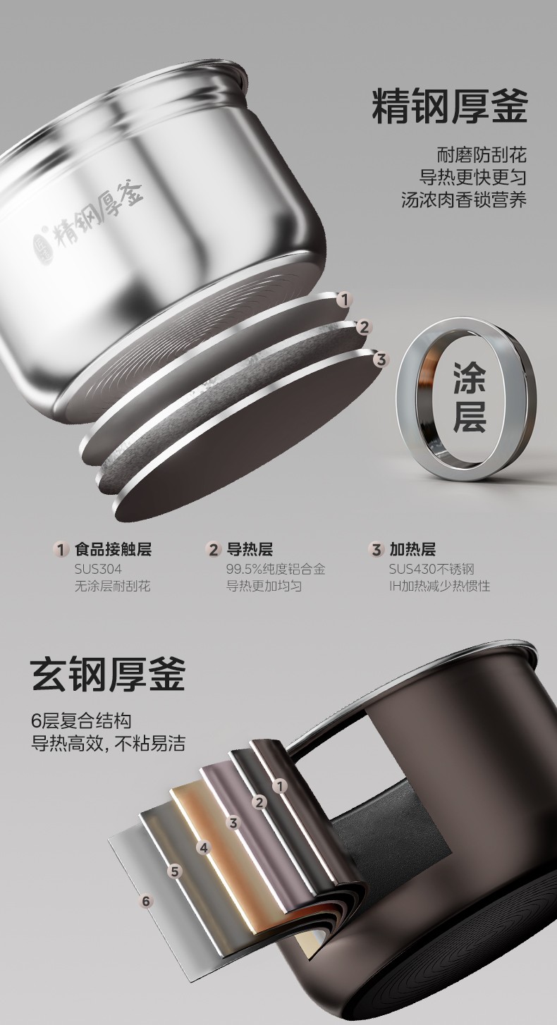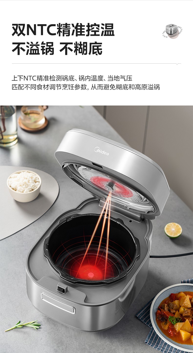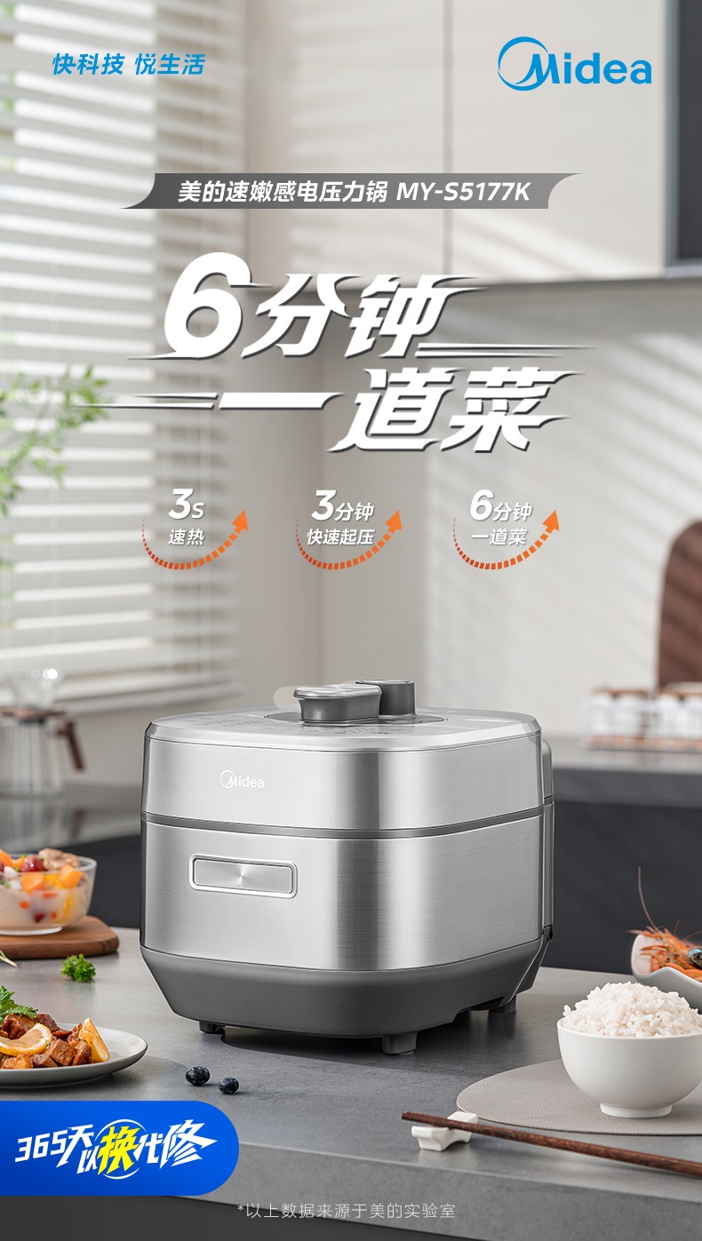 (巨邦佑)R+美的(Midea)0涂层电压力锅S5177K 大容量家用速嫩感双胆IH全自动智能预约煲汤煮饭电饭煲高压锅 5L