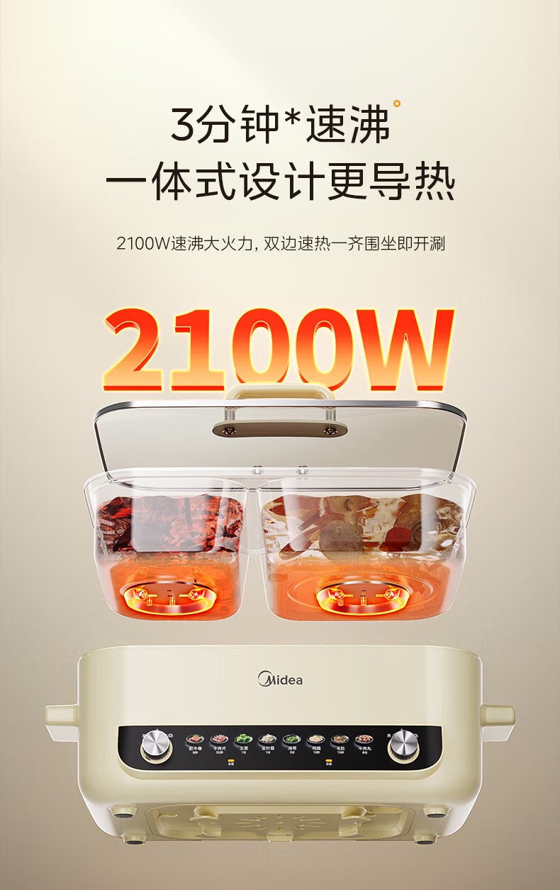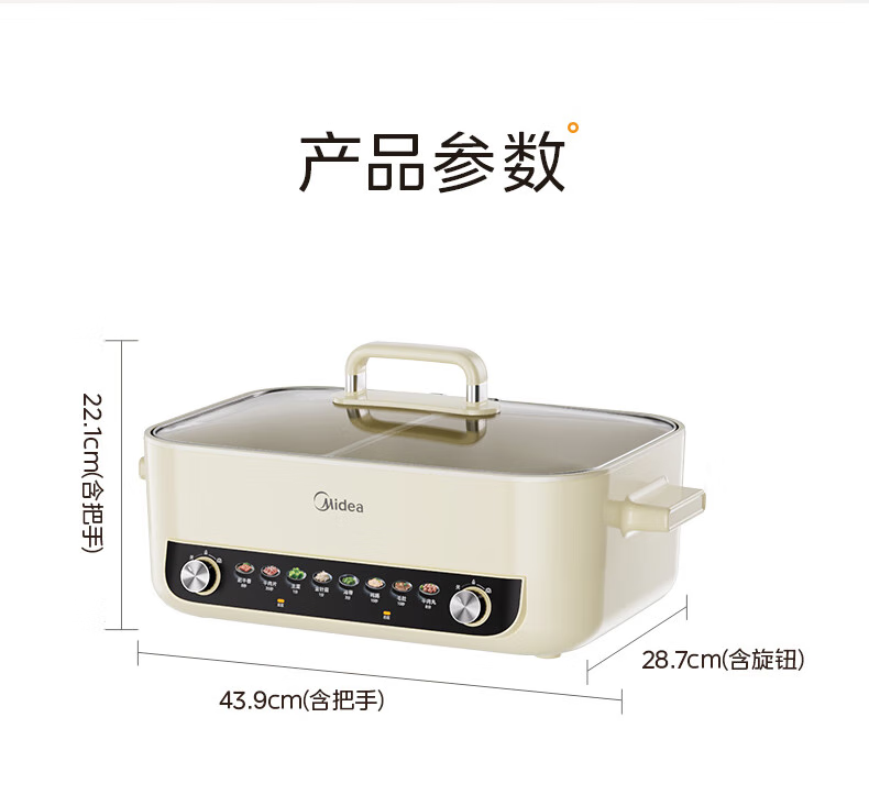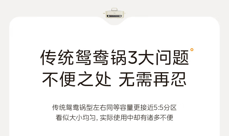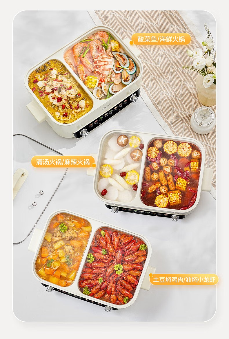 商品名称:(巨邦佑)R+美的(Midea)电火锅 HGC382716 火锅专用锅四六鸳鸯锅电锅一体多功能锅家用电煮锅火锅锅分区控温 6.5L