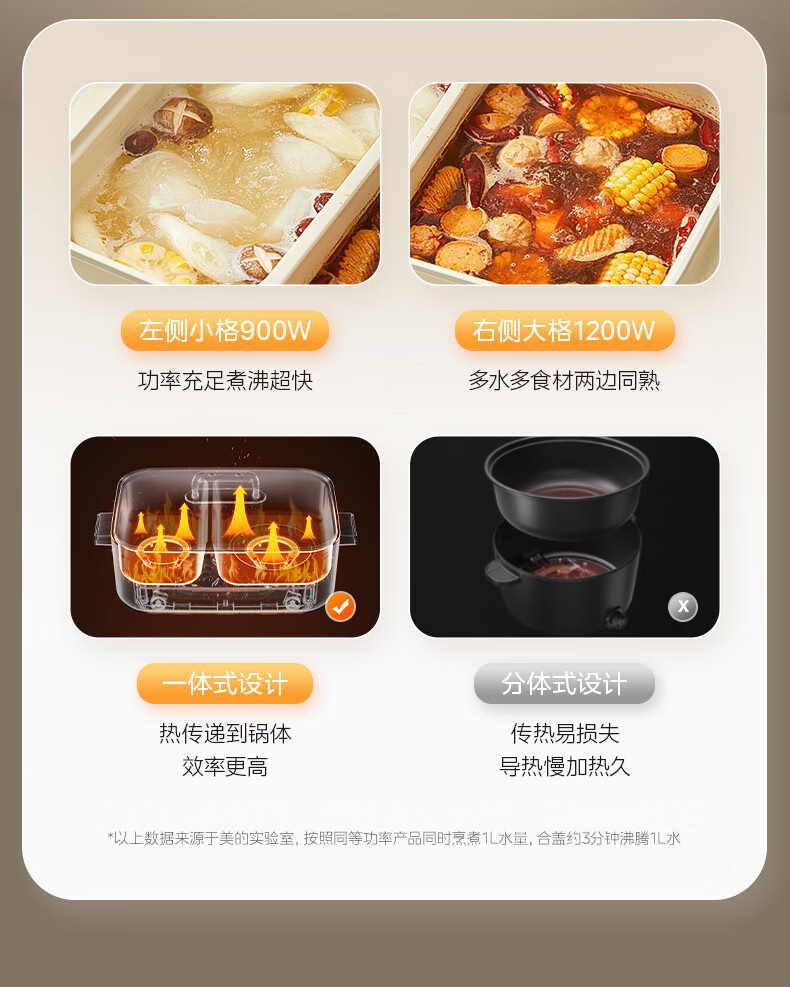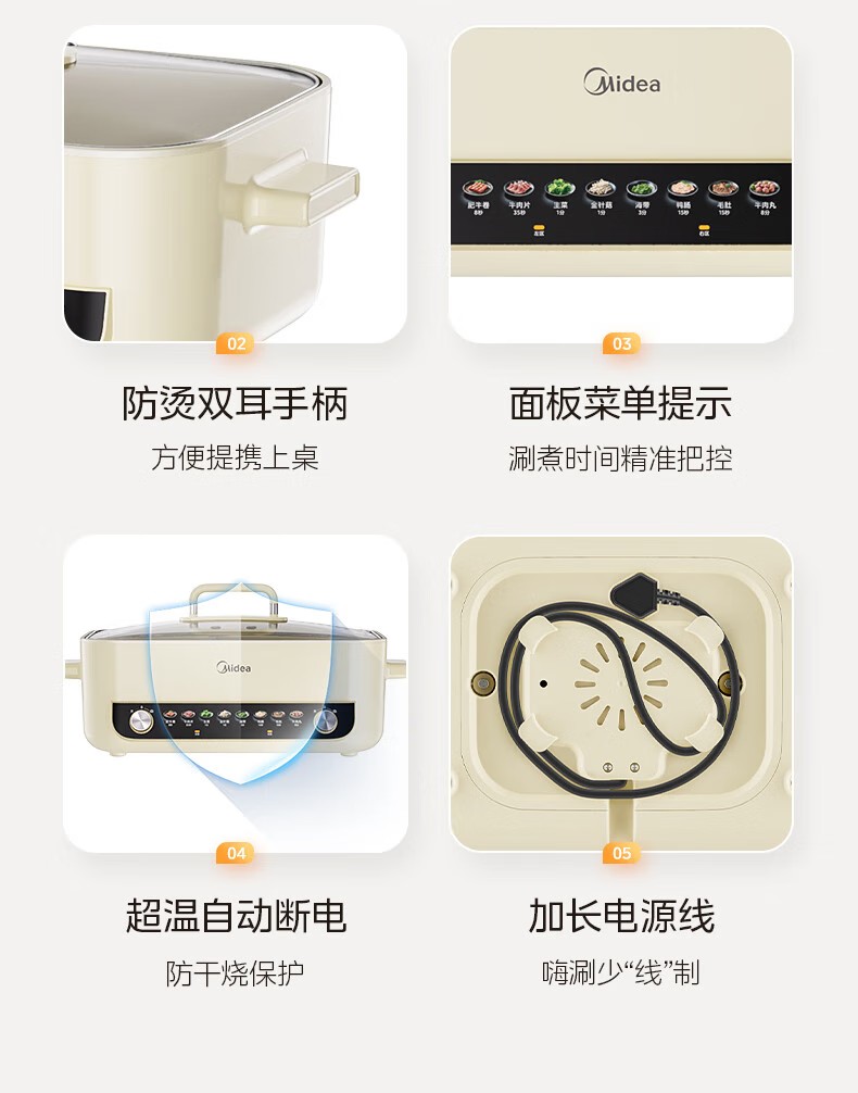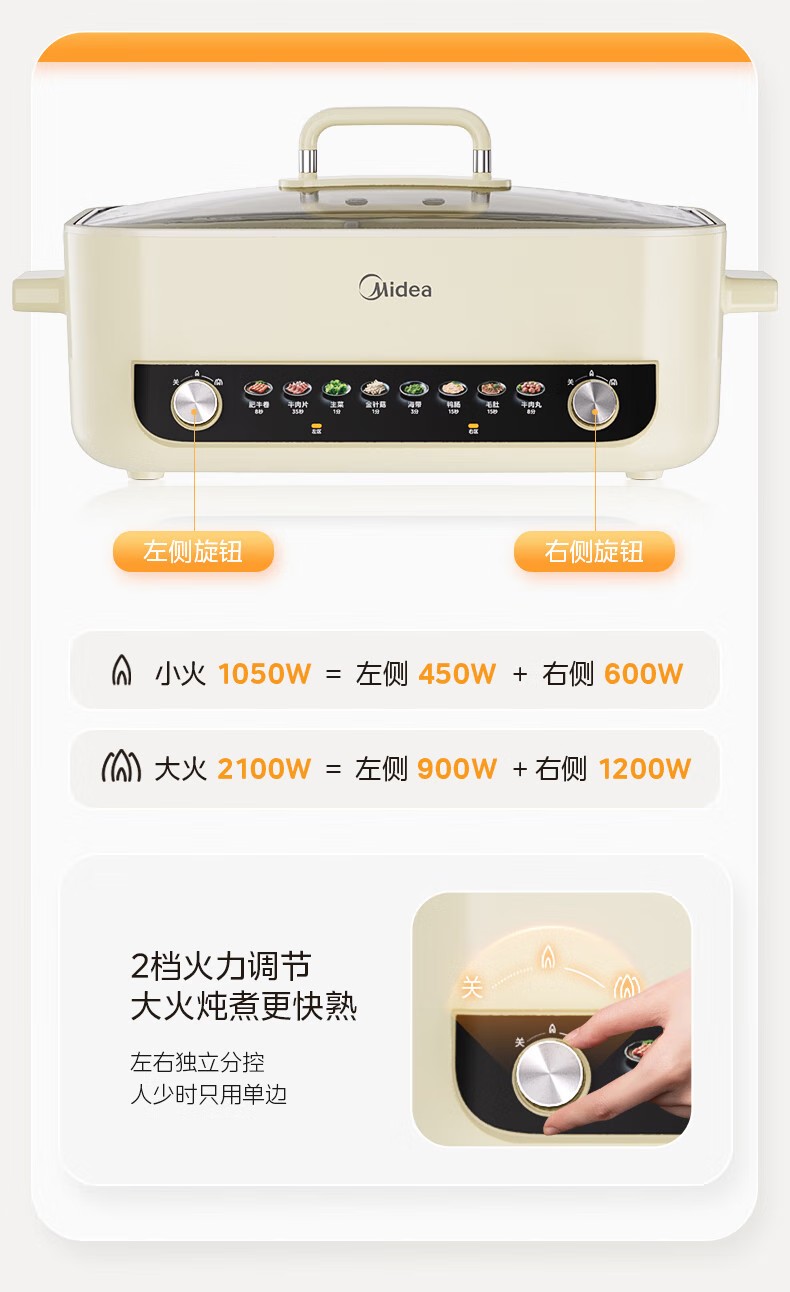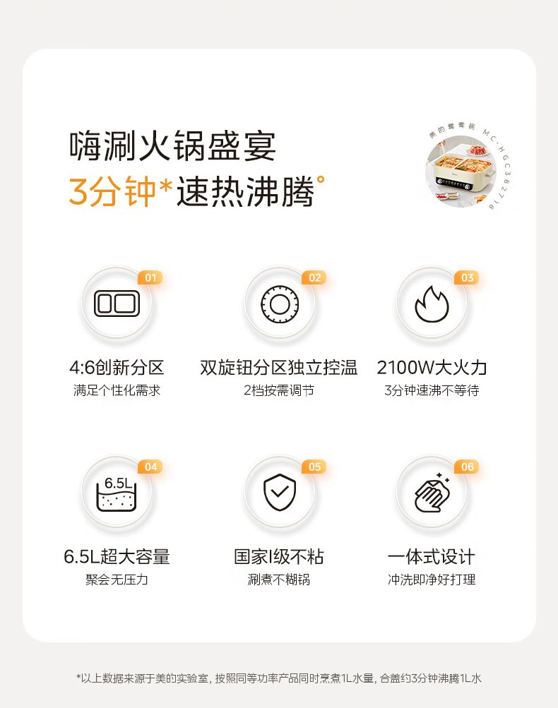 商品名称:(巨邦佑)R+美的(Midea)电火锅 HGC382716 火锅专用锅四六鸳鸯锅电锅一体多功能锅家用电煮锅火锅锅分区控温 6.5L