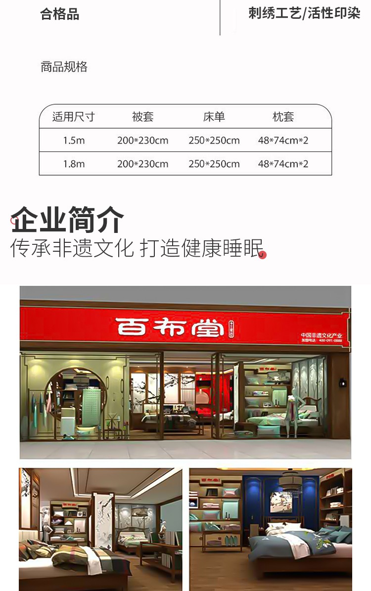 商品名称:(中科惠橙)非遗 · 百布堂精品绣花磨毛四件套 被套:200*230cm 床单:250*250cm 枕套:48*74cm