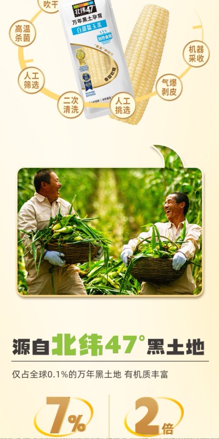 商品名称:(巨邦佑)R+北纬47° 白甜糯玉米4.4斤(220g*10根 ) 东北鲜黏玉米棒真空包装 早餐苞米