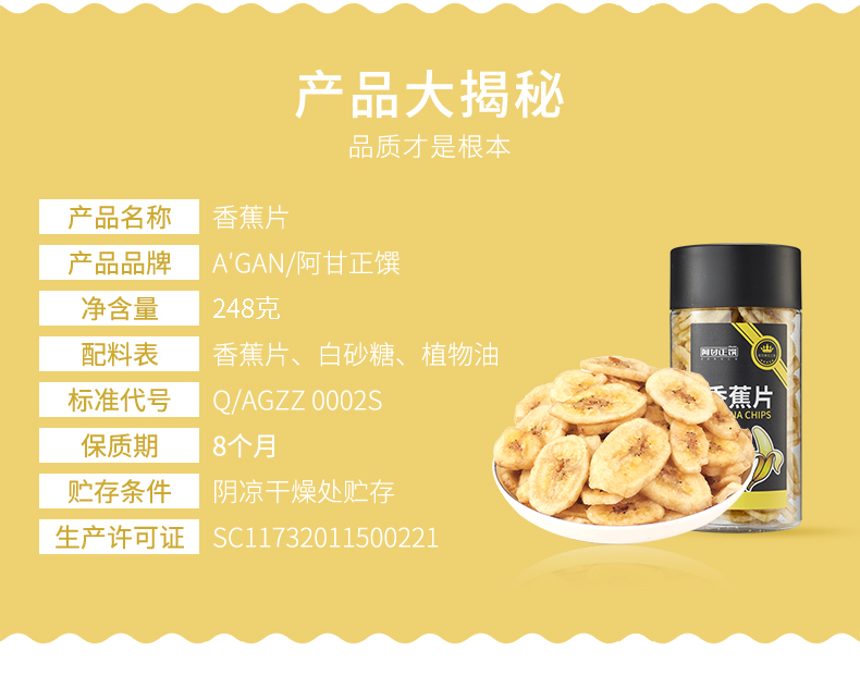商品名称:(巨邦佑)R+阿甘正馔香蕉片248g*2罐 休闲网红零食香脆水果干小吃