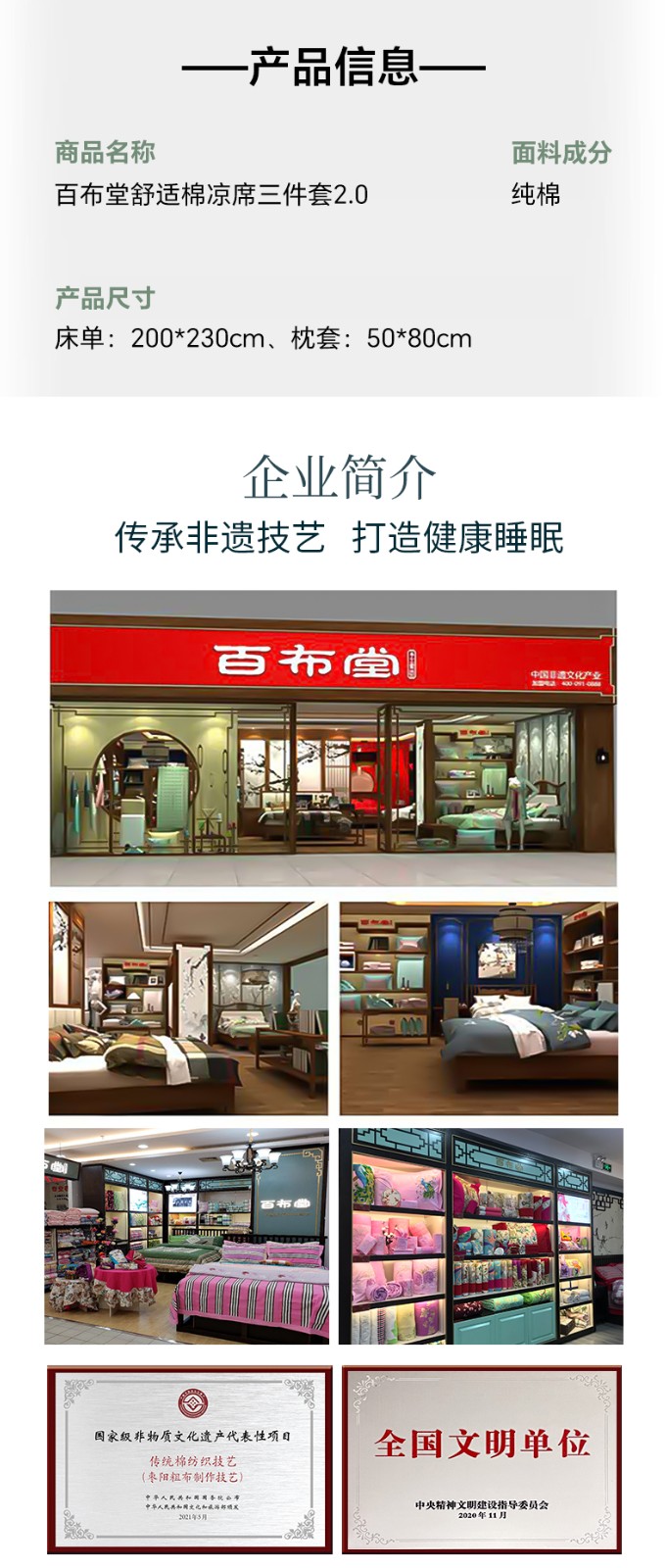 商品名称:(中科惠橙)非遗 · 百布堂纯棉养生棉凉席三件套2.0 凉席:200*240cm 枕套:48*74cm*2