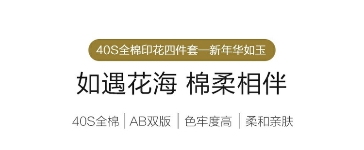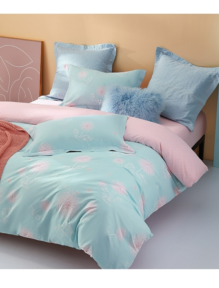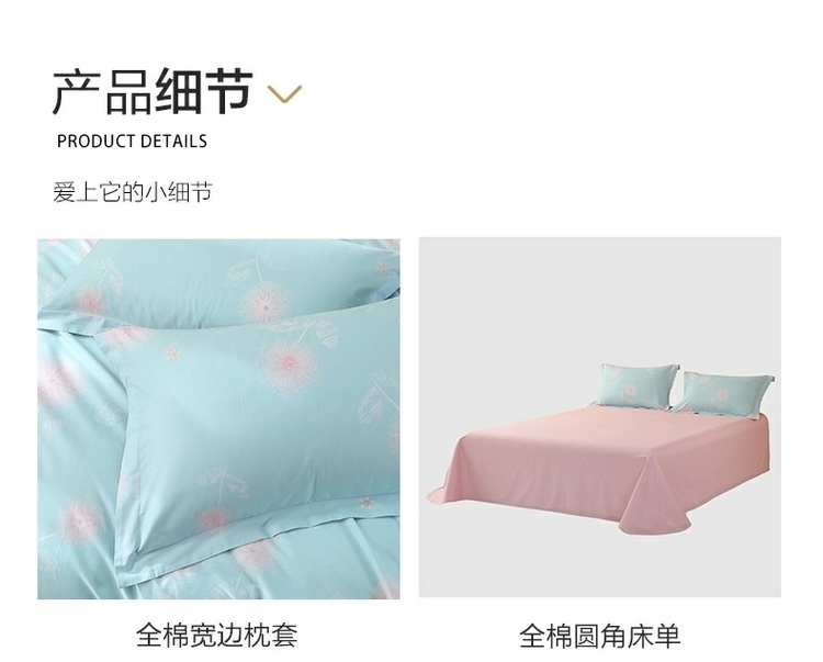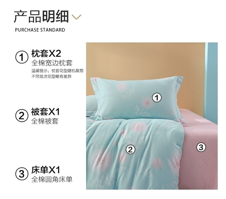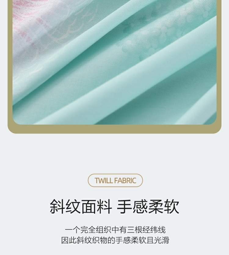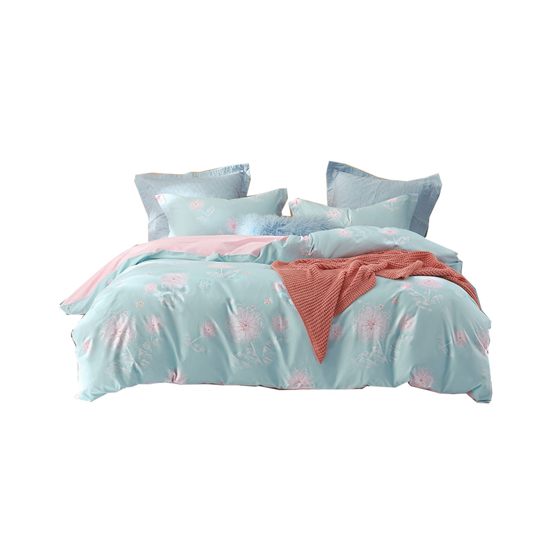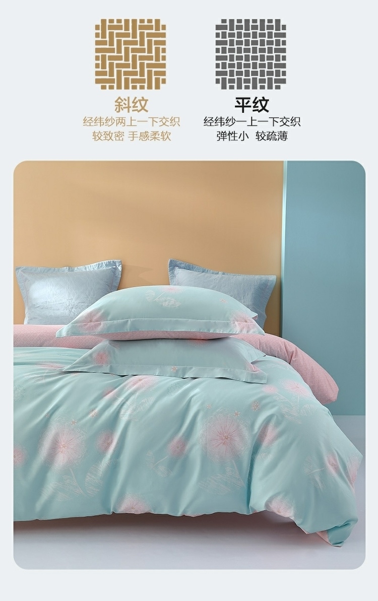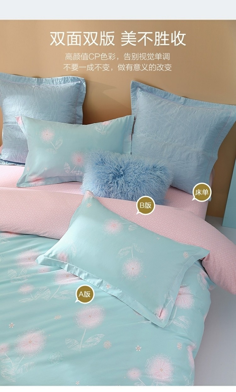(世星阳光)水星家纺新年华如玉四件套 533988 150cm×200cm 100%纯棉 蓝绿 透气抗菌 四季通用 双面花色 新年华如玉-S04