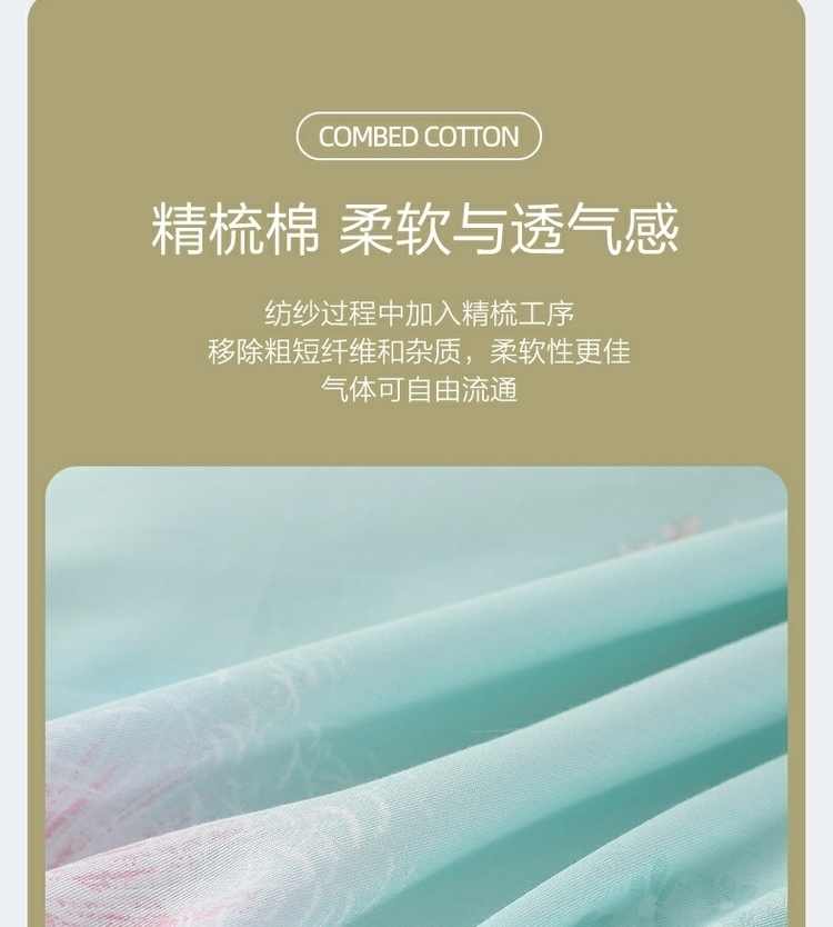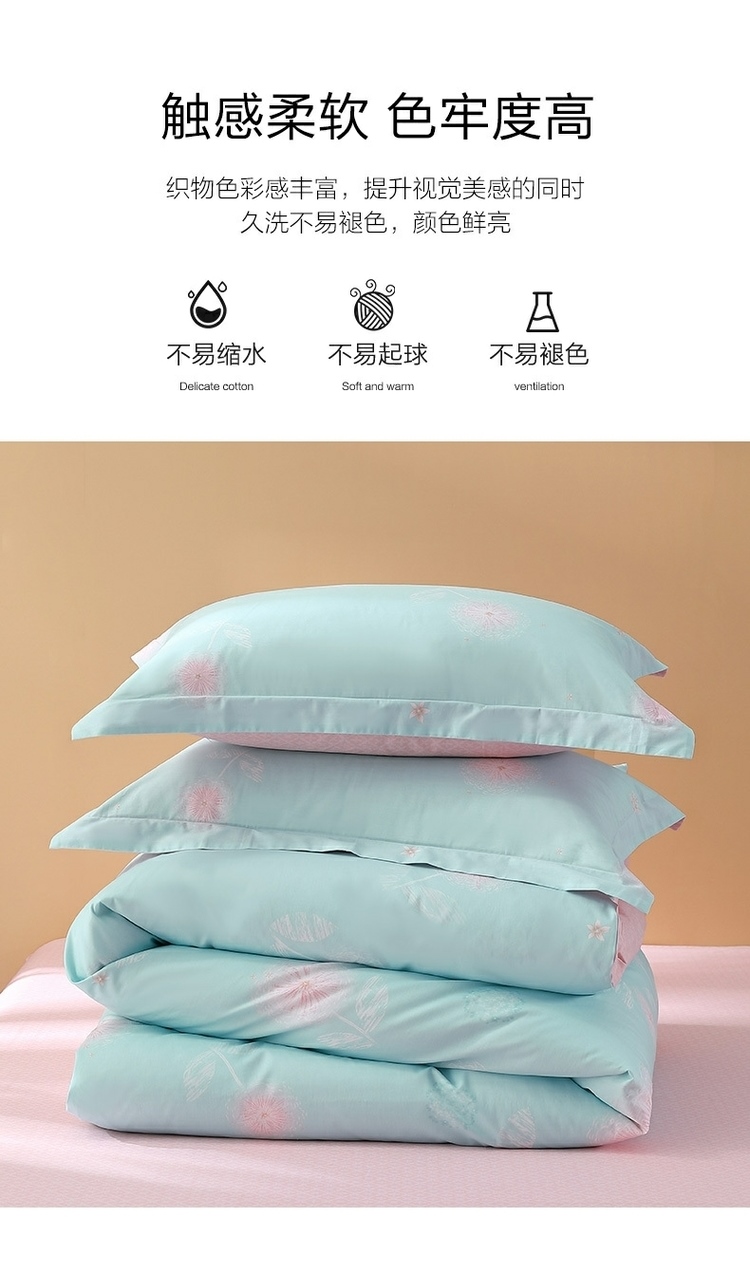 商品名称:(世星阳光)水星家纺新年华如玉四件套 533988 150cm×200cm 100%纯棉 蓝绿 透气抗菌 四季通用 双面花色 新年华如玉-S04