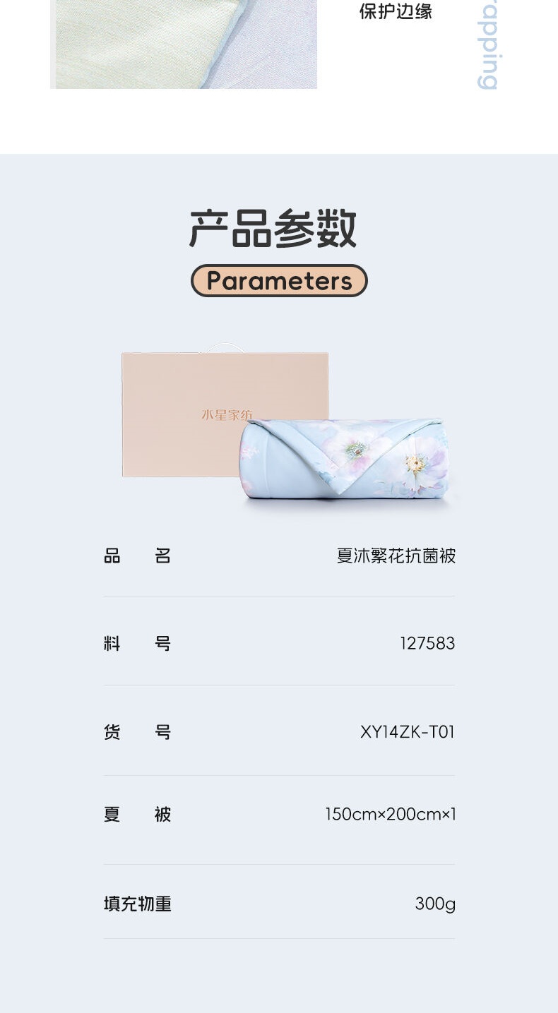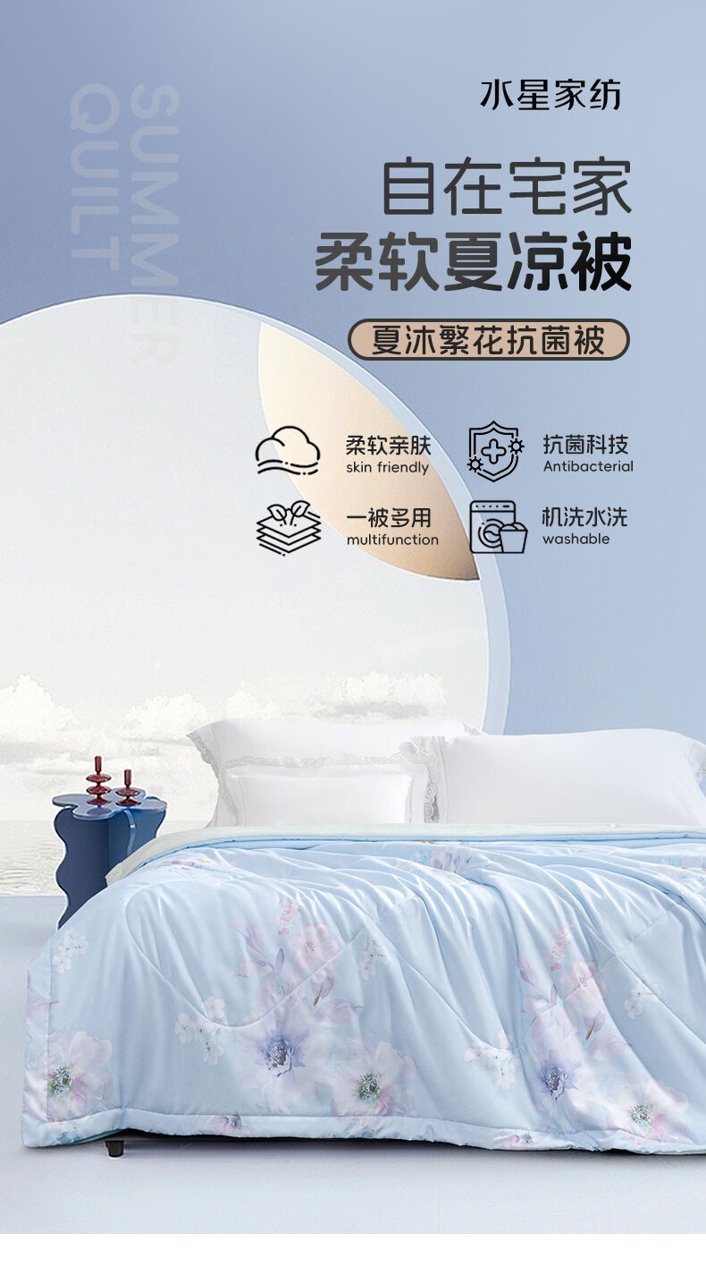 商品名称:(世星阳光)水星家纺 夏沐繁花抗菌被 150cm×200cm 127583DH 100%聚酯纤维 夏凉被 夏沐繁花抗菌被