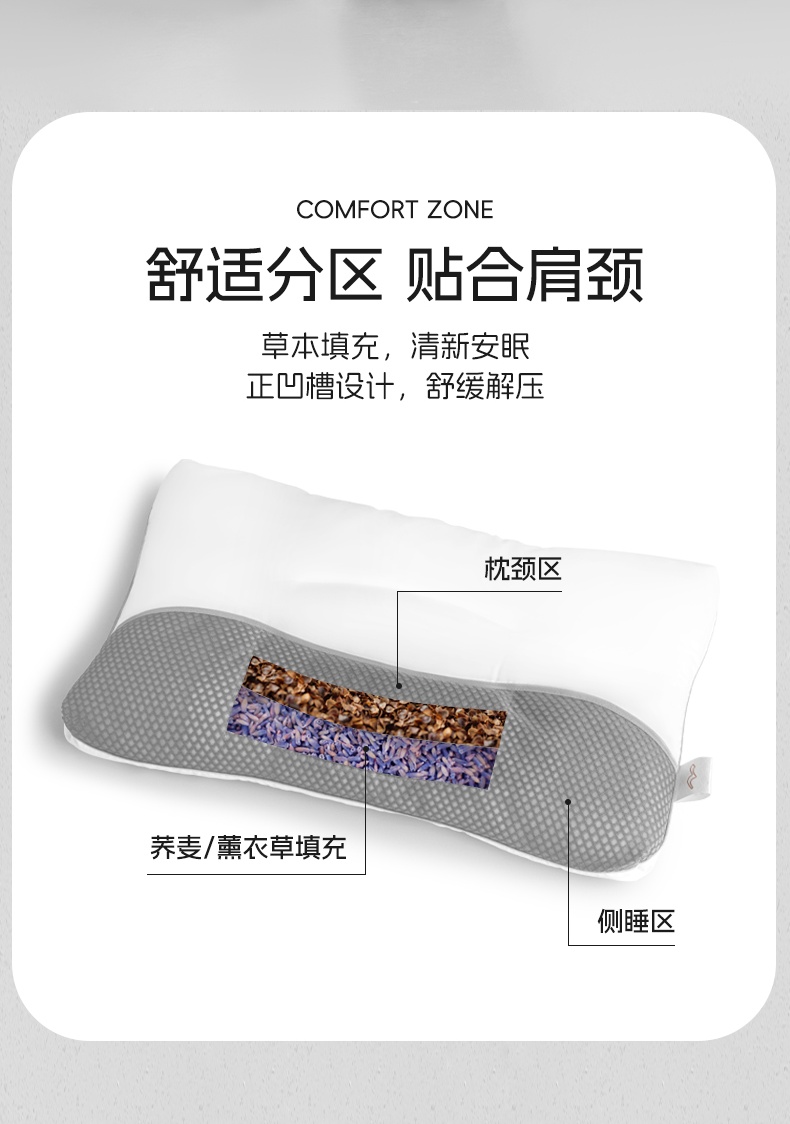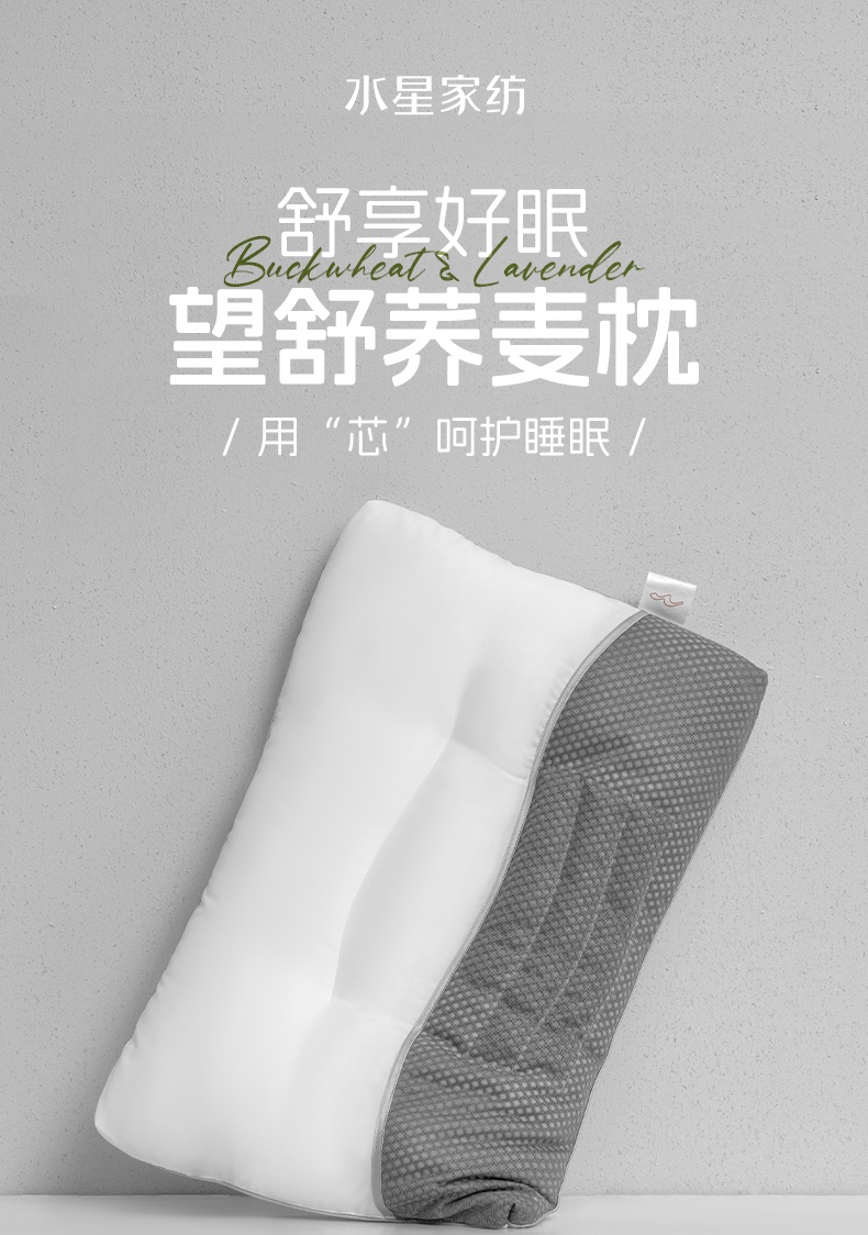 (世星阳光)水星家纺 望舒荞麦枕 HN40cm×60cm 126014DH 面料100%聚酯纤维 内衬100%丙纶 填充物100%聚酯纤维(内含养麦壳+薰衣草) 草本枕 洁净舒适 抗菌防螨 蓬松自然 望舒荞麦枕