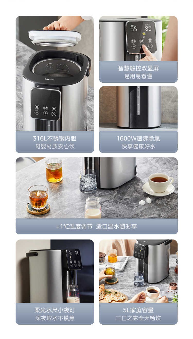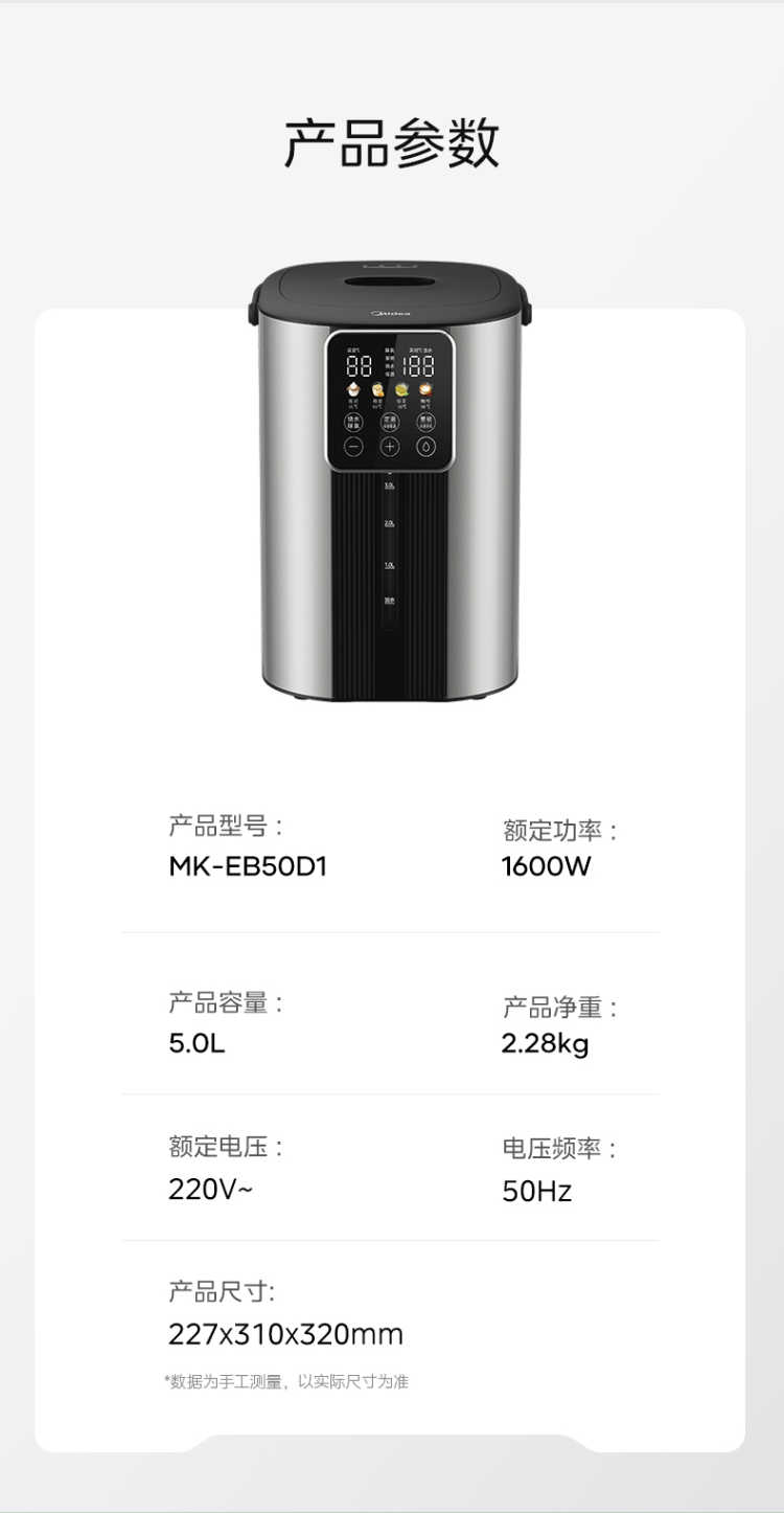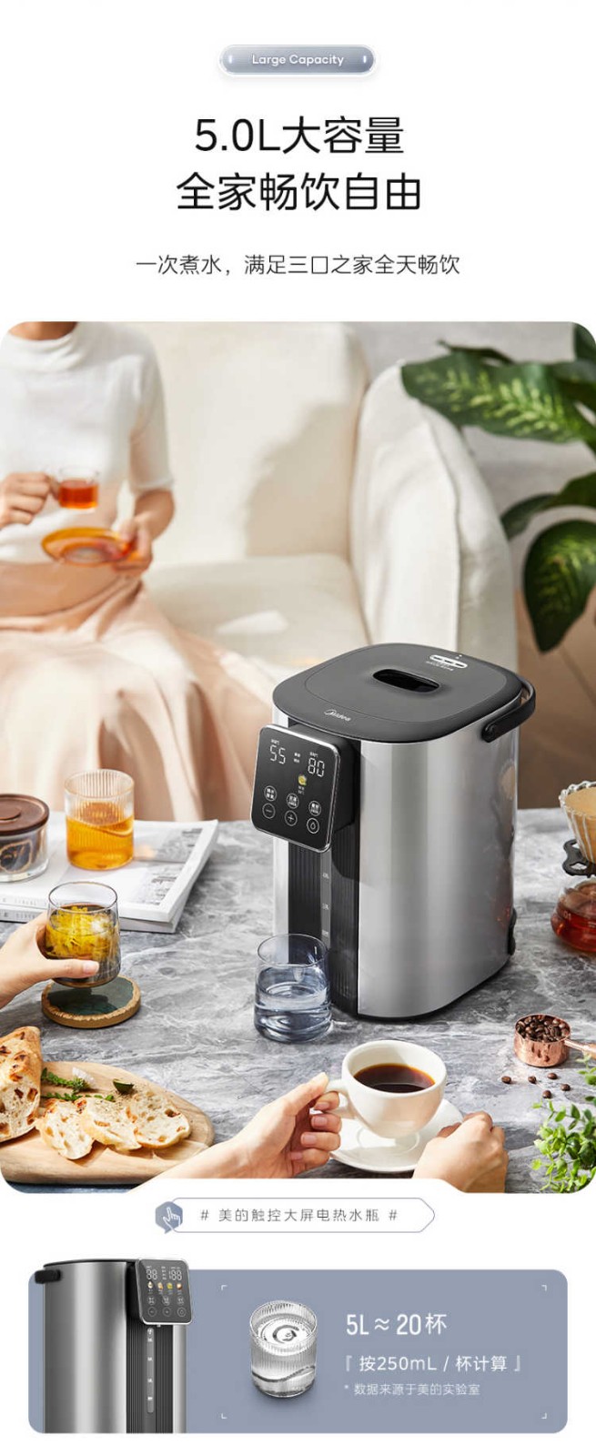 商品名称:(巨邦佑)R+美的(Midea)电热水瓶EB50D1 家用烧水壶触控屏可调温除氯316L母婴级不锈钢防干烧柔光夜灯 线下同款 5L
