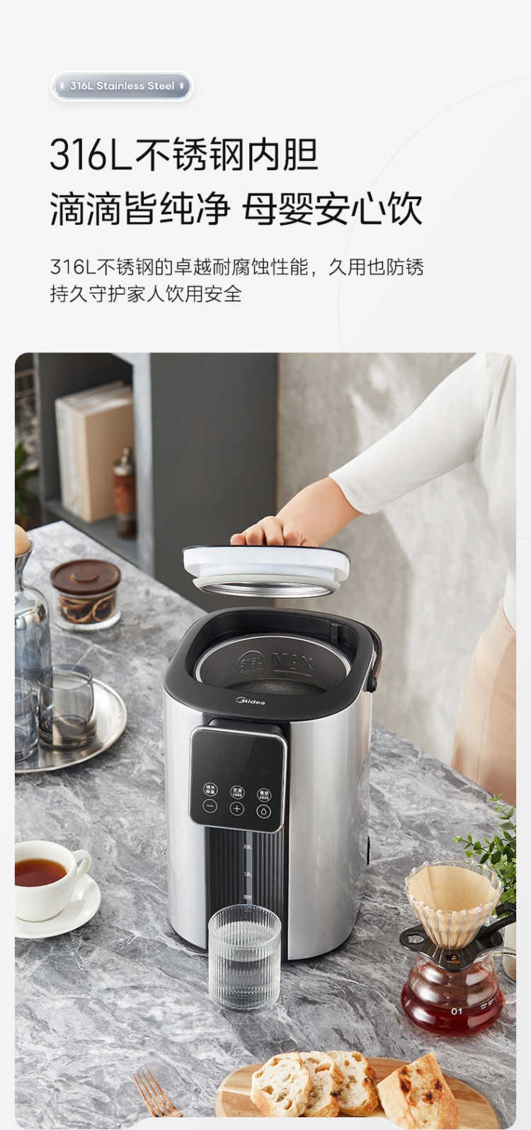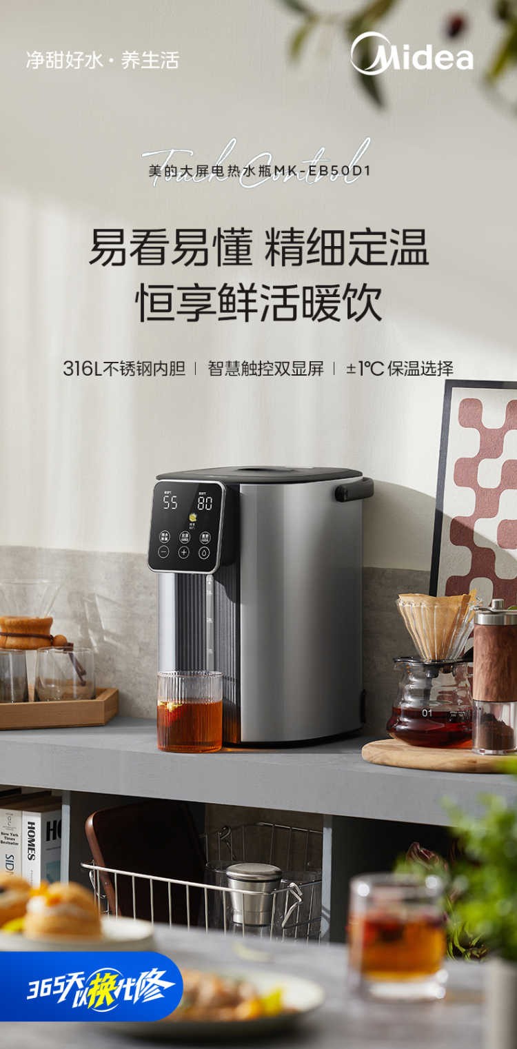 (巨邦佑)R+美的(Midea)电热水瓶EB50D1 家用烧水壶触控屏可调温除氯316L母婴级不锈钢防干烧柔光夜灯 线下同款 5L