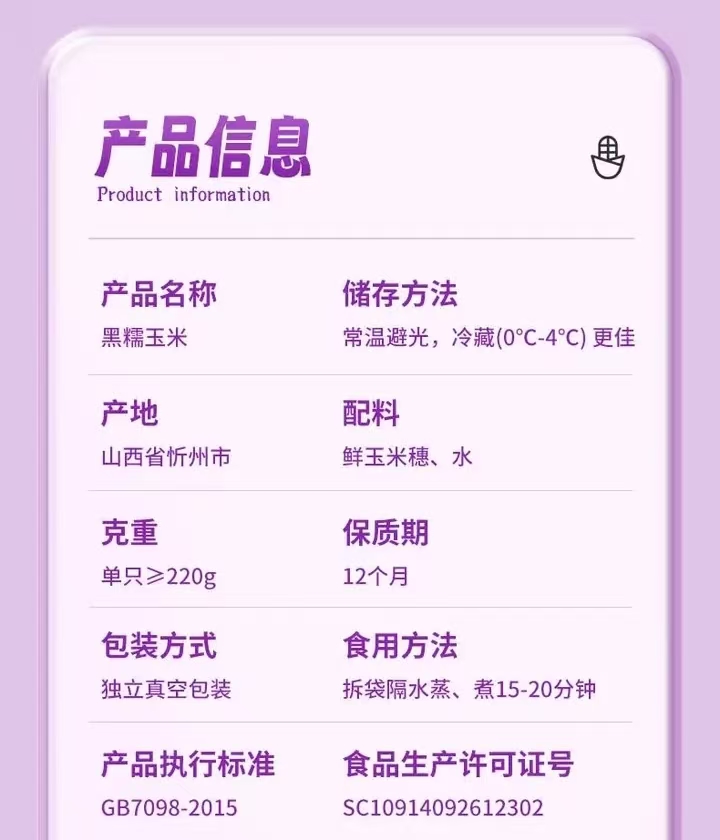 商品名称:(世星阳光)民间造物 有机黑玉米礼盒8根装 单根300g±50g 皮薄黏糯 果香浓郁 原生态 非转基因