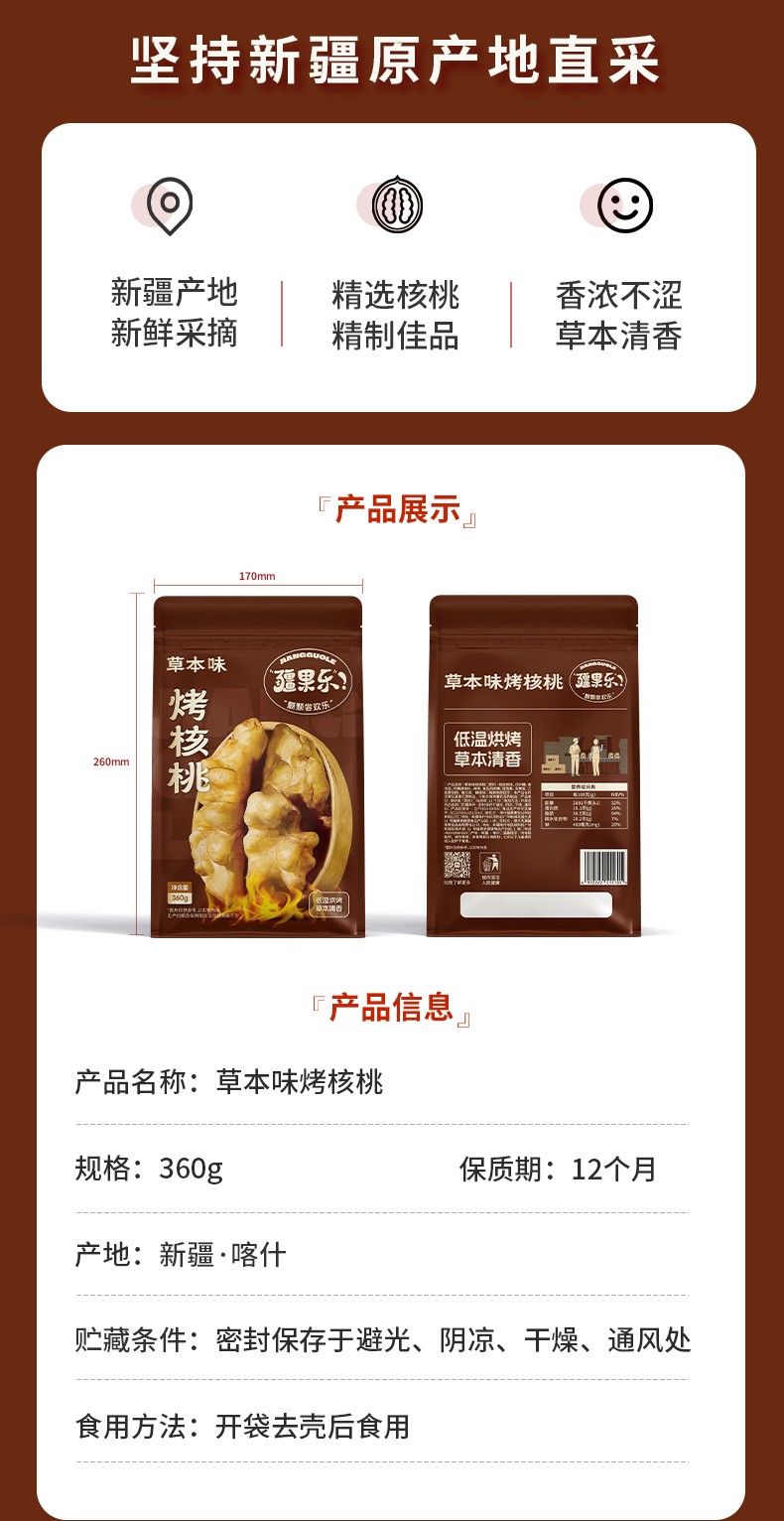 商品名称:(世星阳光) 疆果乐草本味烤核桃360g 草本味薄皮核桃手剥休闲零食坚果炒货