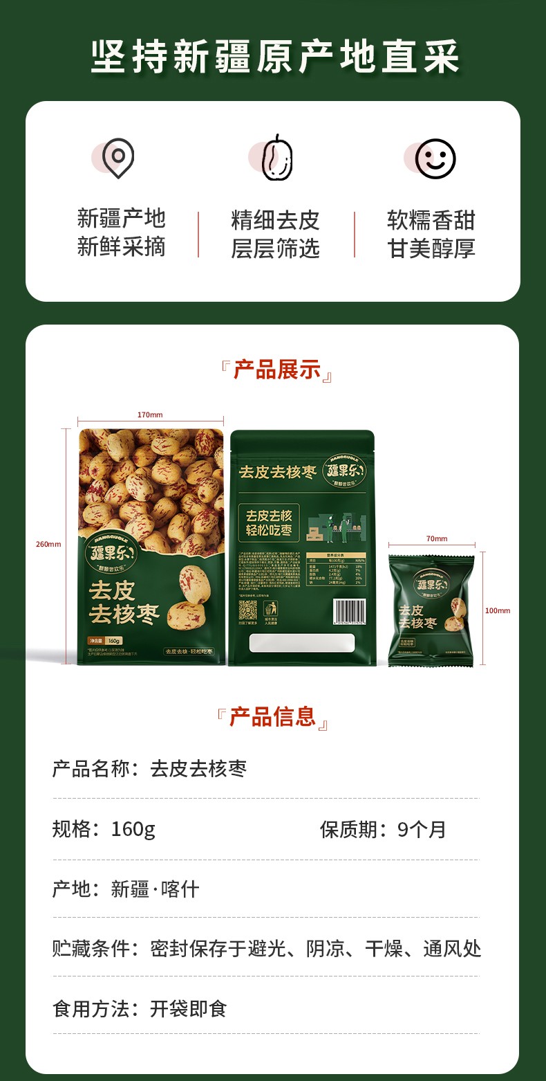 商品名称:(世星阳光) 疆果乐去皮去核枣160g 大枣肉零食蜜饯果干休闲零食