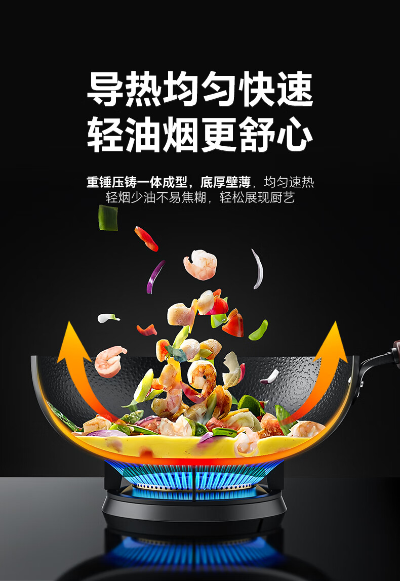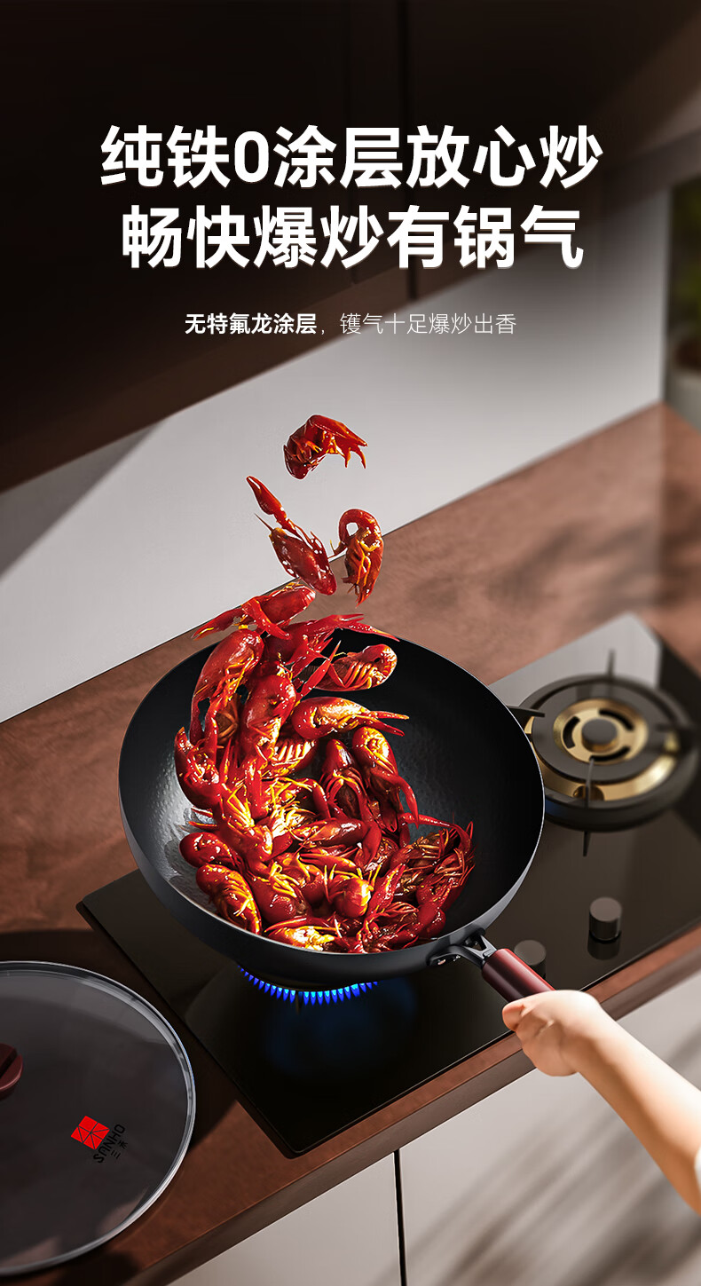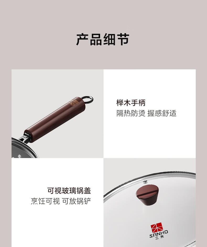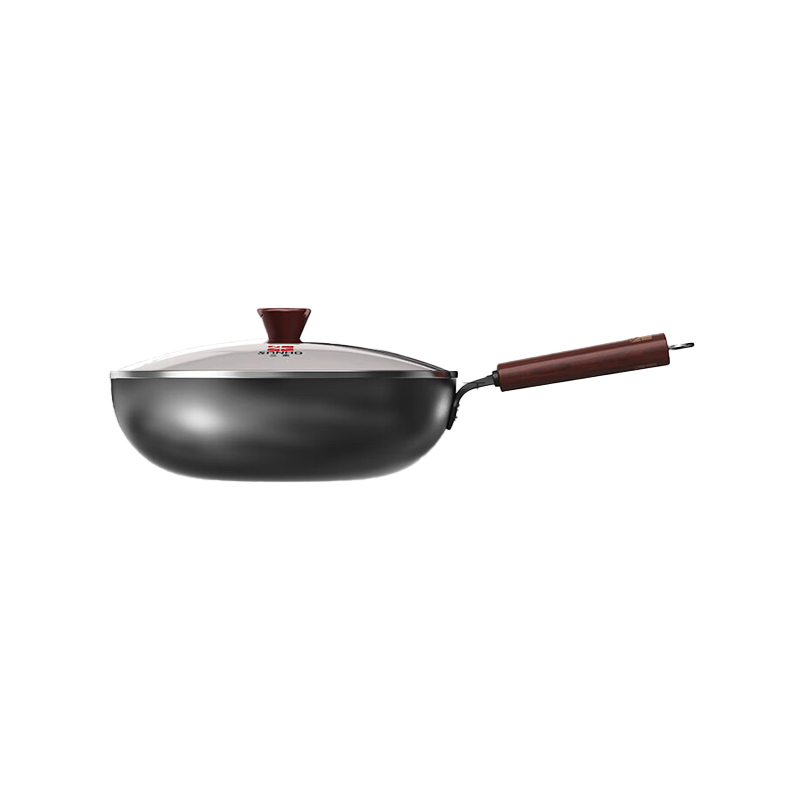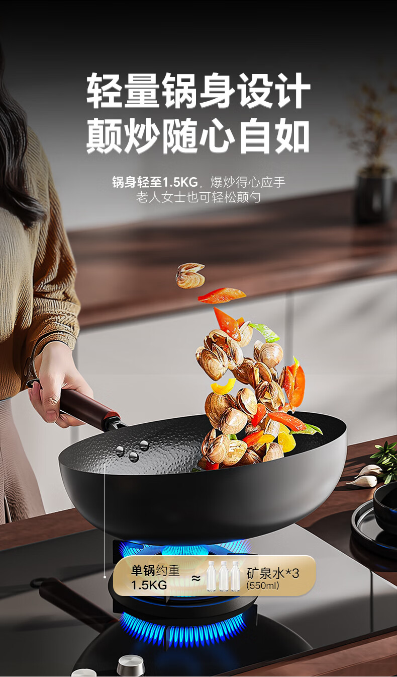(巨邦佑)BJ+三禾臻不锈锤纹铁炒锅 32cm TC32P13无涂层物理不粘锅炒锅熟铁一体炒菜锅