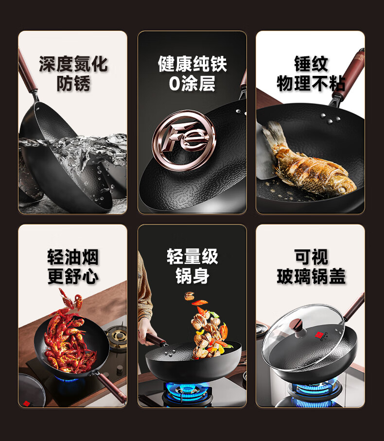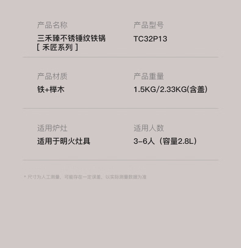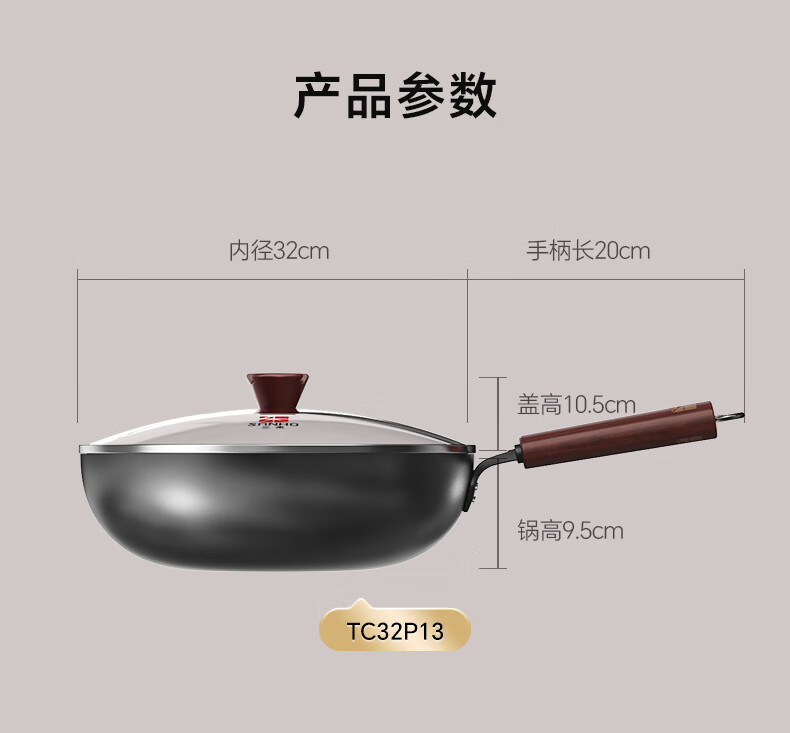商品名称:(巨邦佑)BJ+三禾臻不锈锤纹铁炒锅 32cm TC32P13无涂层物理不粘锅炒锅熟铁一体炒菜锅