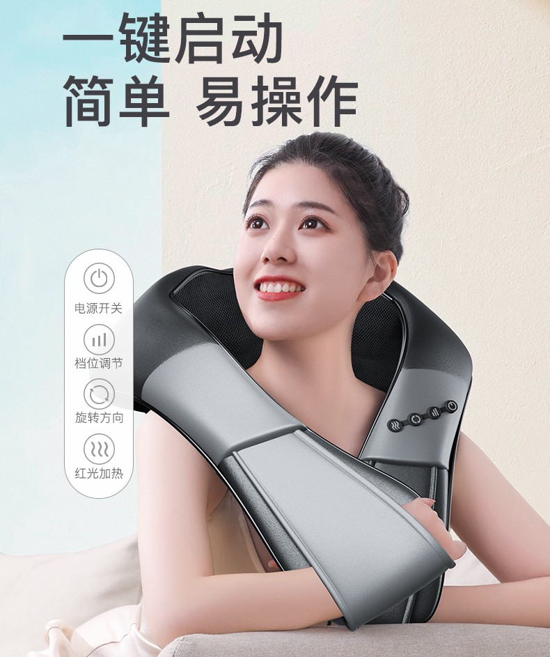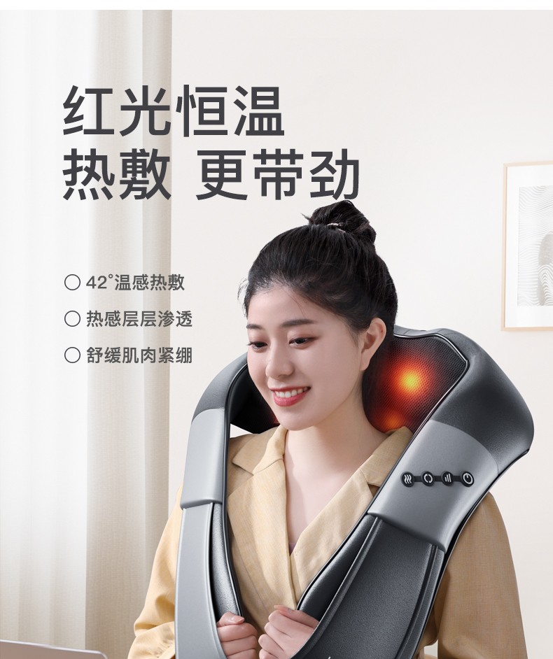 商品名称:(世星阳光)Loroina罗沥纳 3D揉捏按摩披肩L665-1 插电款 u形贴合颈椎 8D旋转按摩 红光恒温热敷 肩颈定位到穴