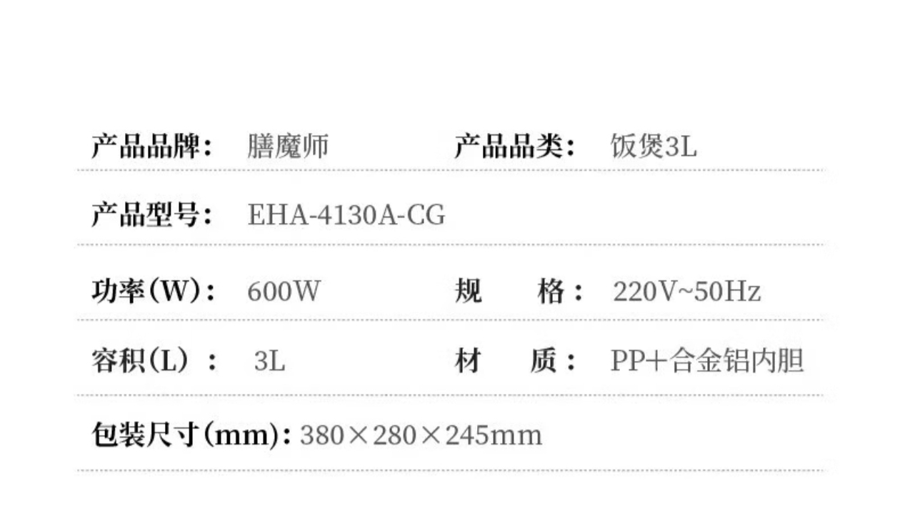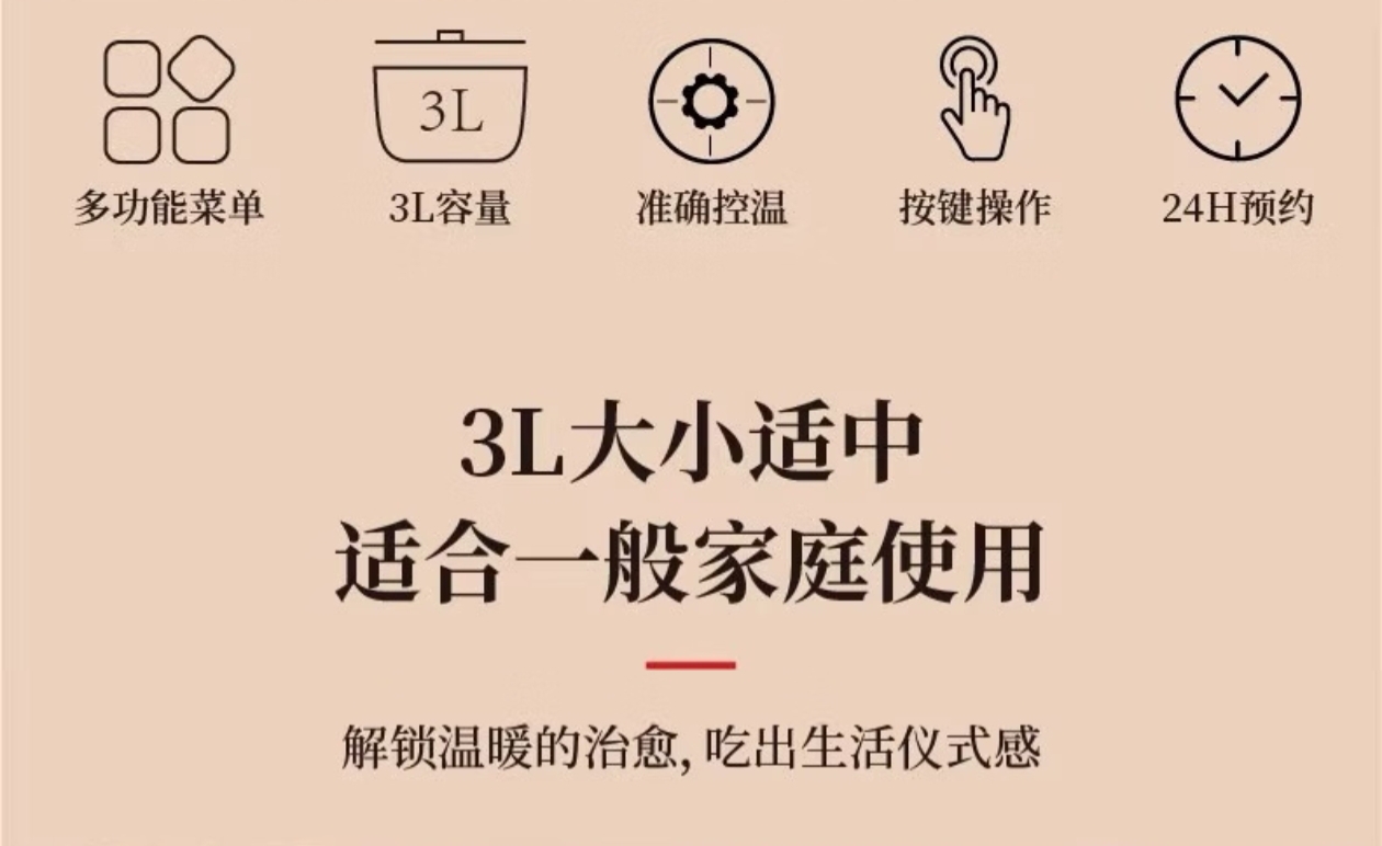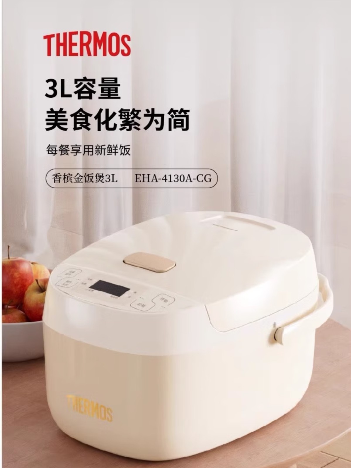 商品名称:(巨邦佑)T+膳魔师智能电饭煲4130A-CG 3L家用3-5人大容量电饭煲智能控温预约触控功能合金内胆