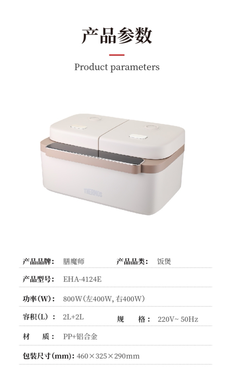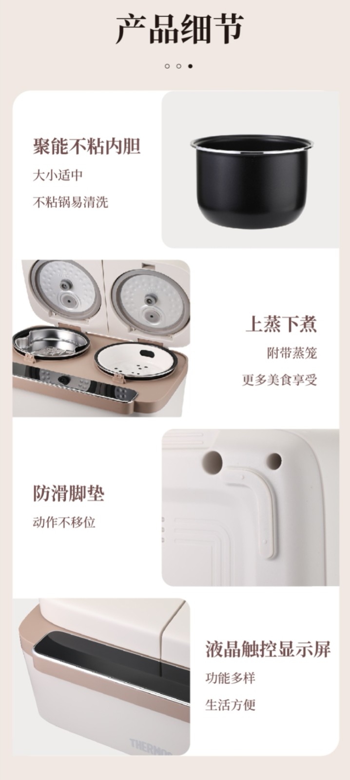 商品名称:(巨邦佑)T+膳魔师电饭煲 EHA-4124E 驼色4L 多功能智能双胆不粘电饭煲上蒸下煮