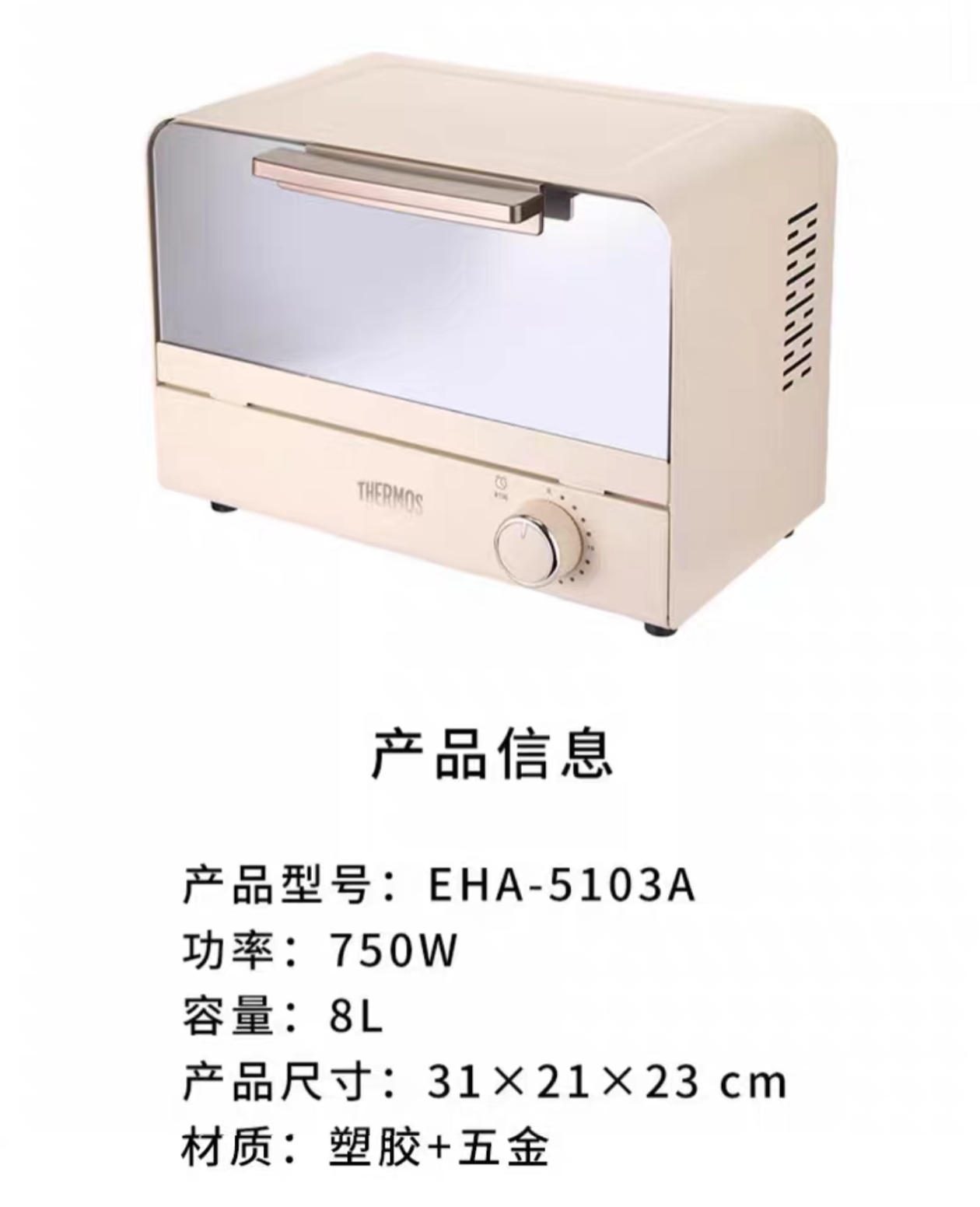 商品名称:(巨邦佑)T+膳魔师小型电烤箱EHA-5103A 8升可视外观广域视角一体机多功能智能空气炸烤箱低油热风