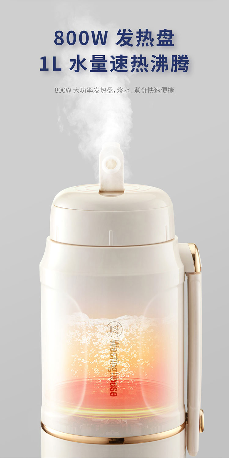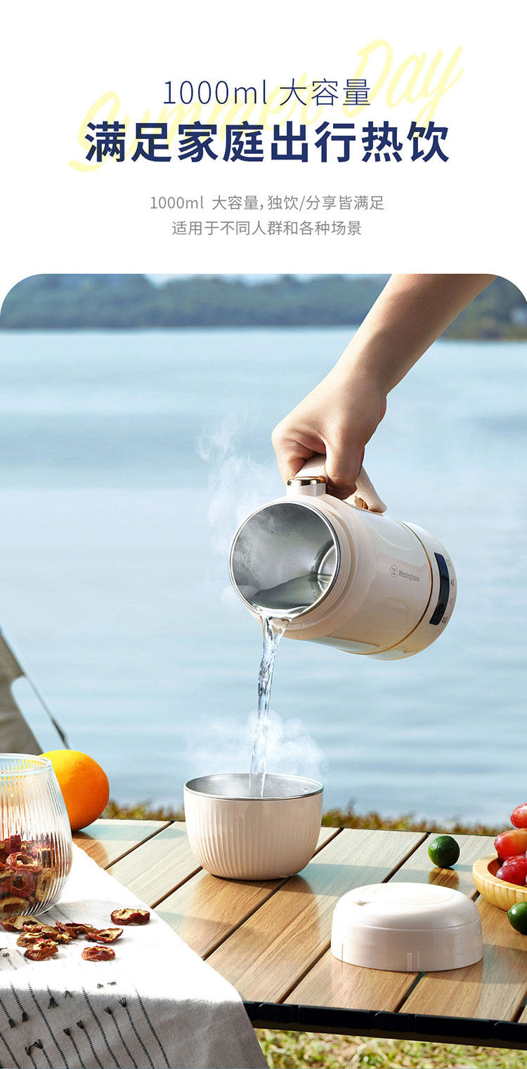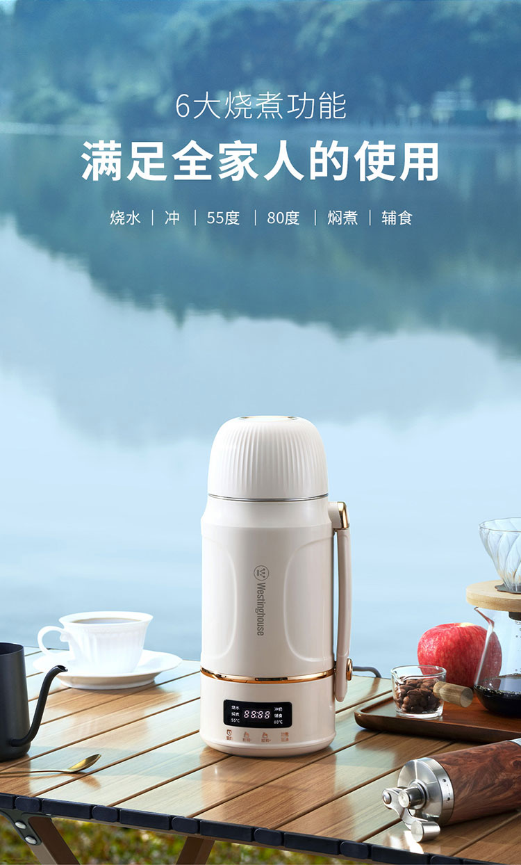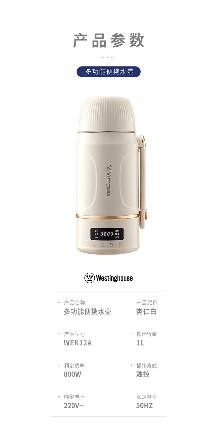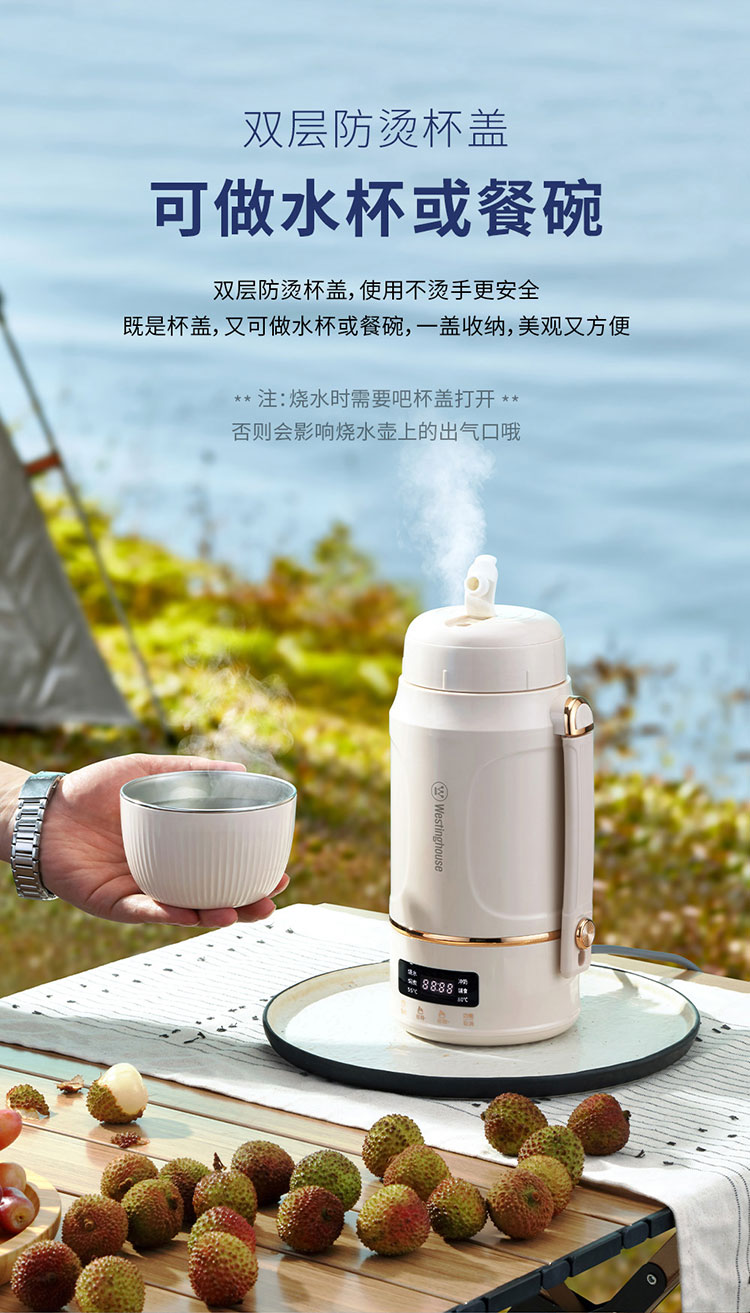 商品名称:(世星阳光)+WY西屋 多功能便携水壶 1L WEK12A 双层防烫杯盖可做水杯或餐碗