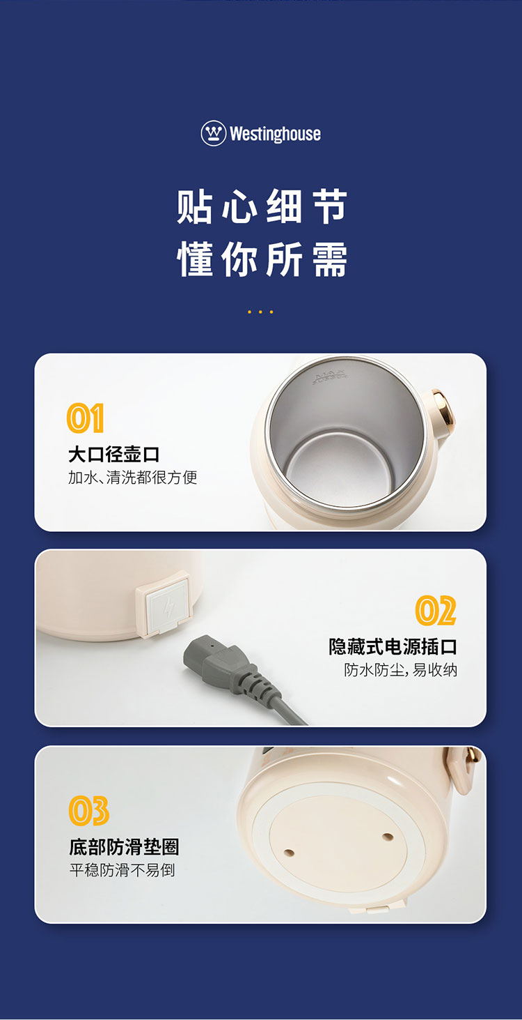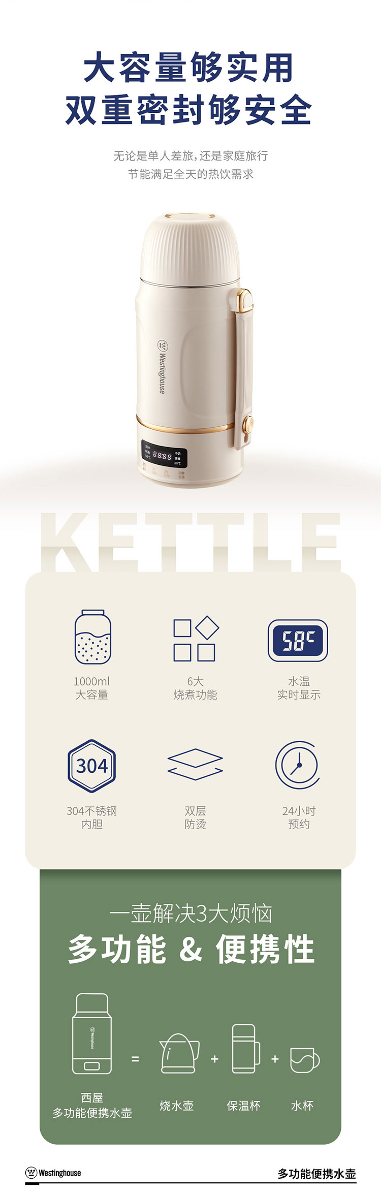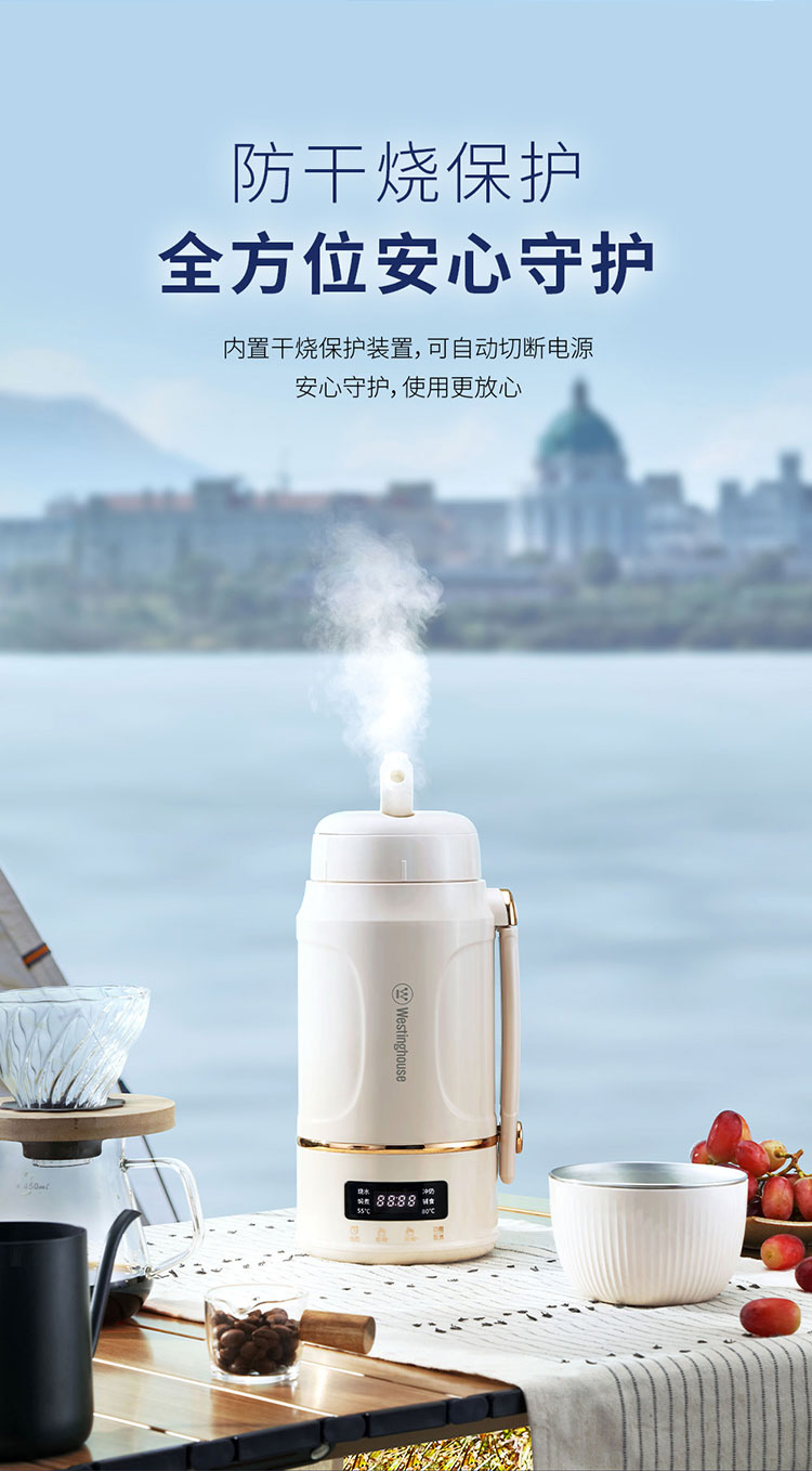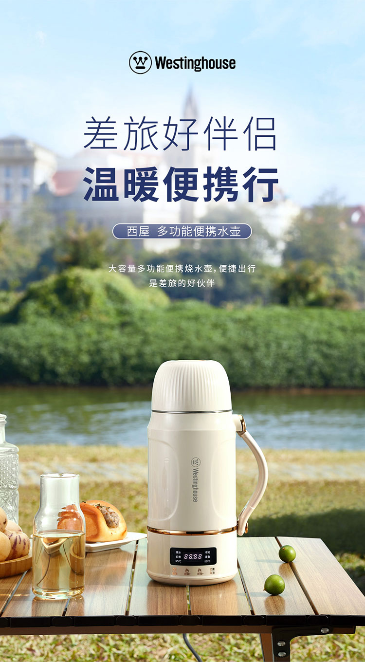 商品名称:(世星阳光)+WY西屋 多功能便携水壶 1L WEK12A 双层防烫杯盖可做水杯或餐碗