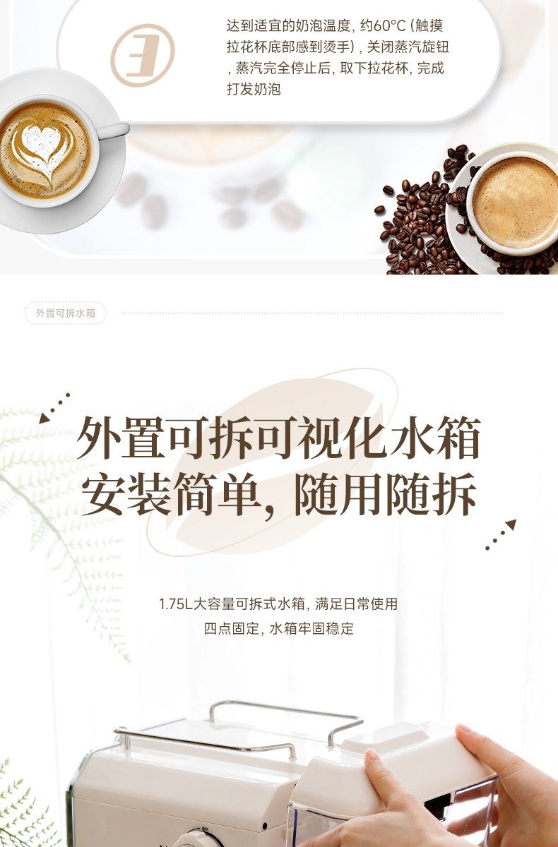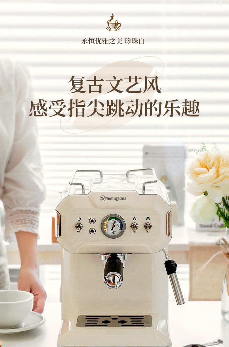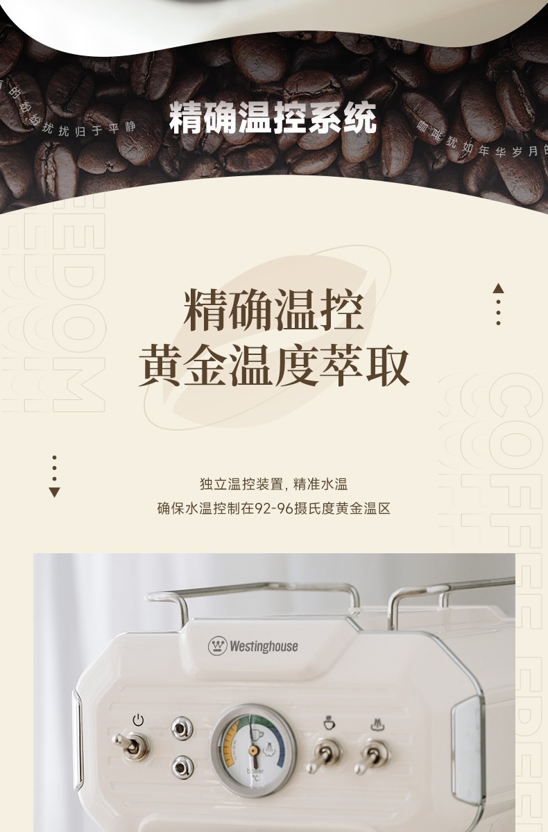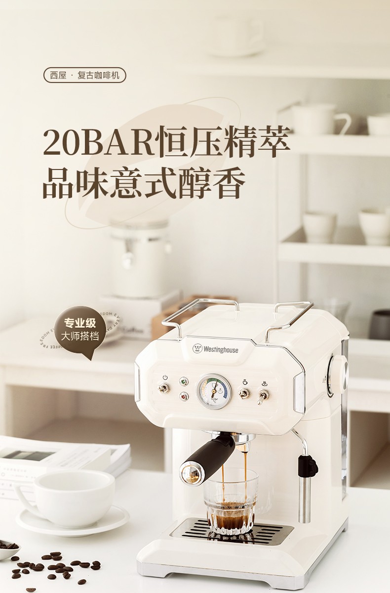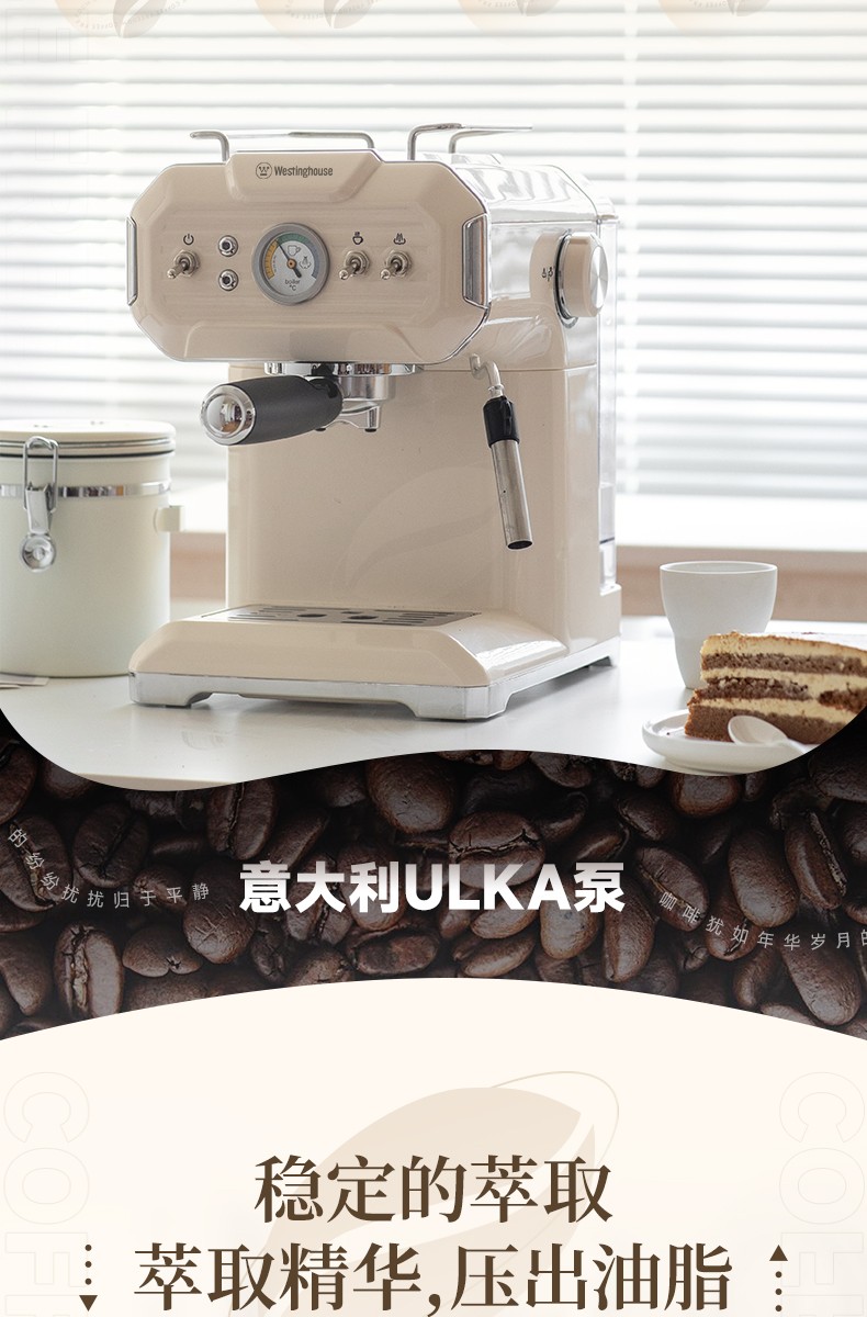 (世星阳光)+WY西屋 咖啡机 1.8L WKF1320 萃取泵压 20BAR 意大利ULKA泵 精确温控系统 20BAR黄金压力 稳定奶泡系统