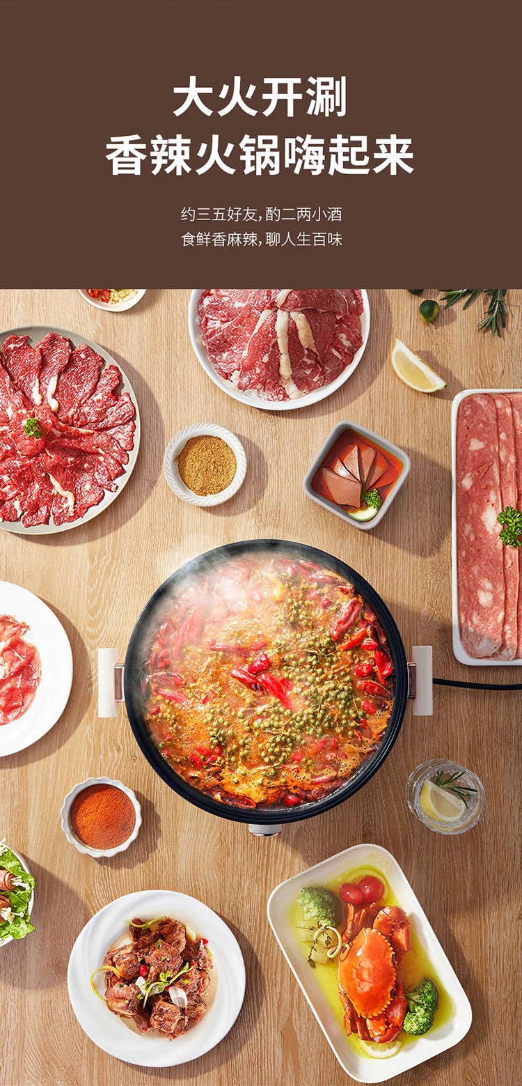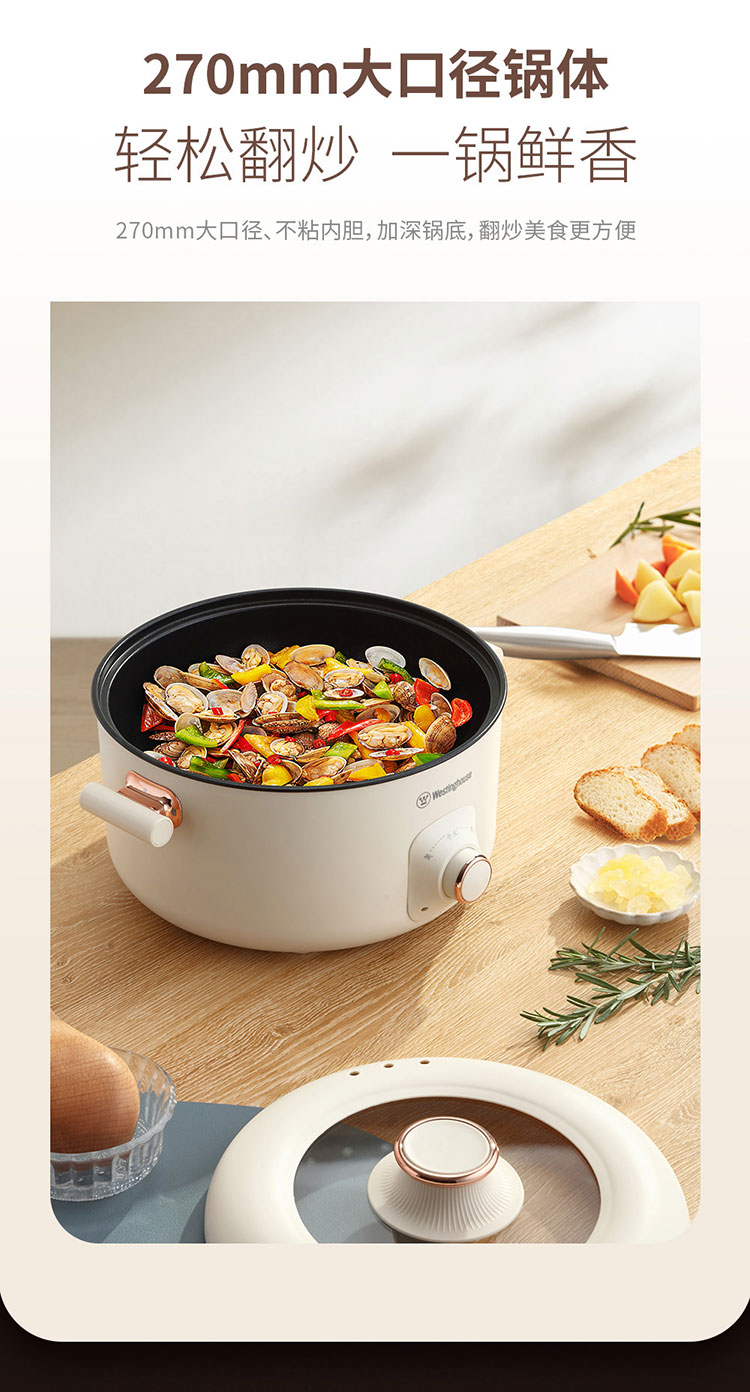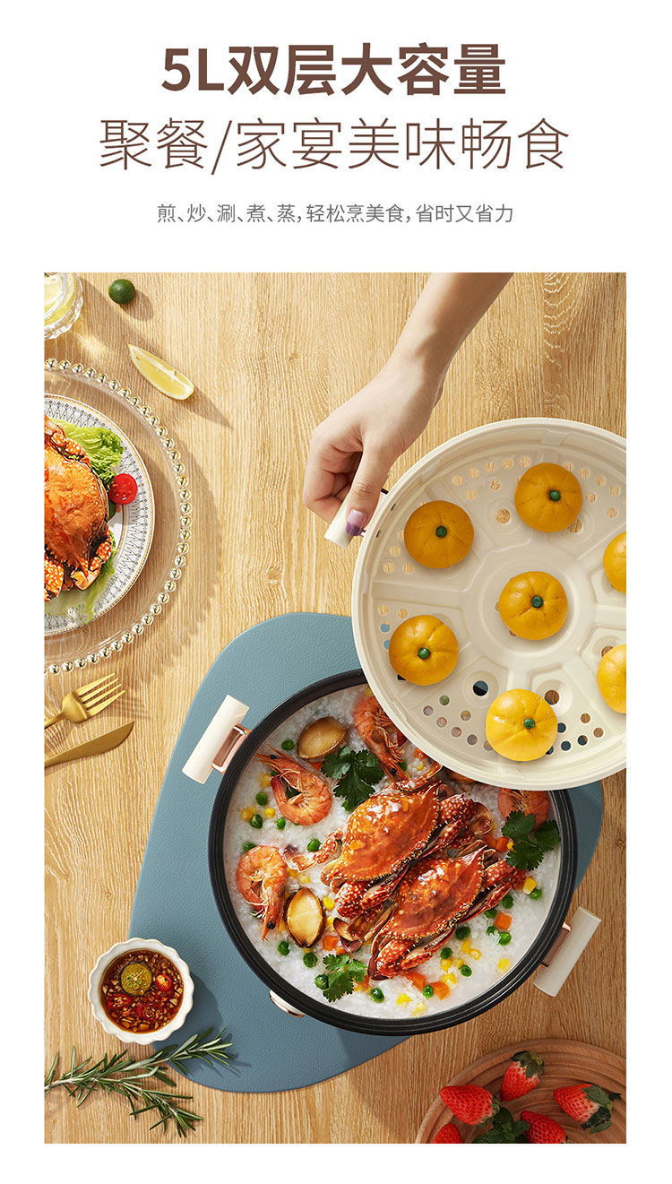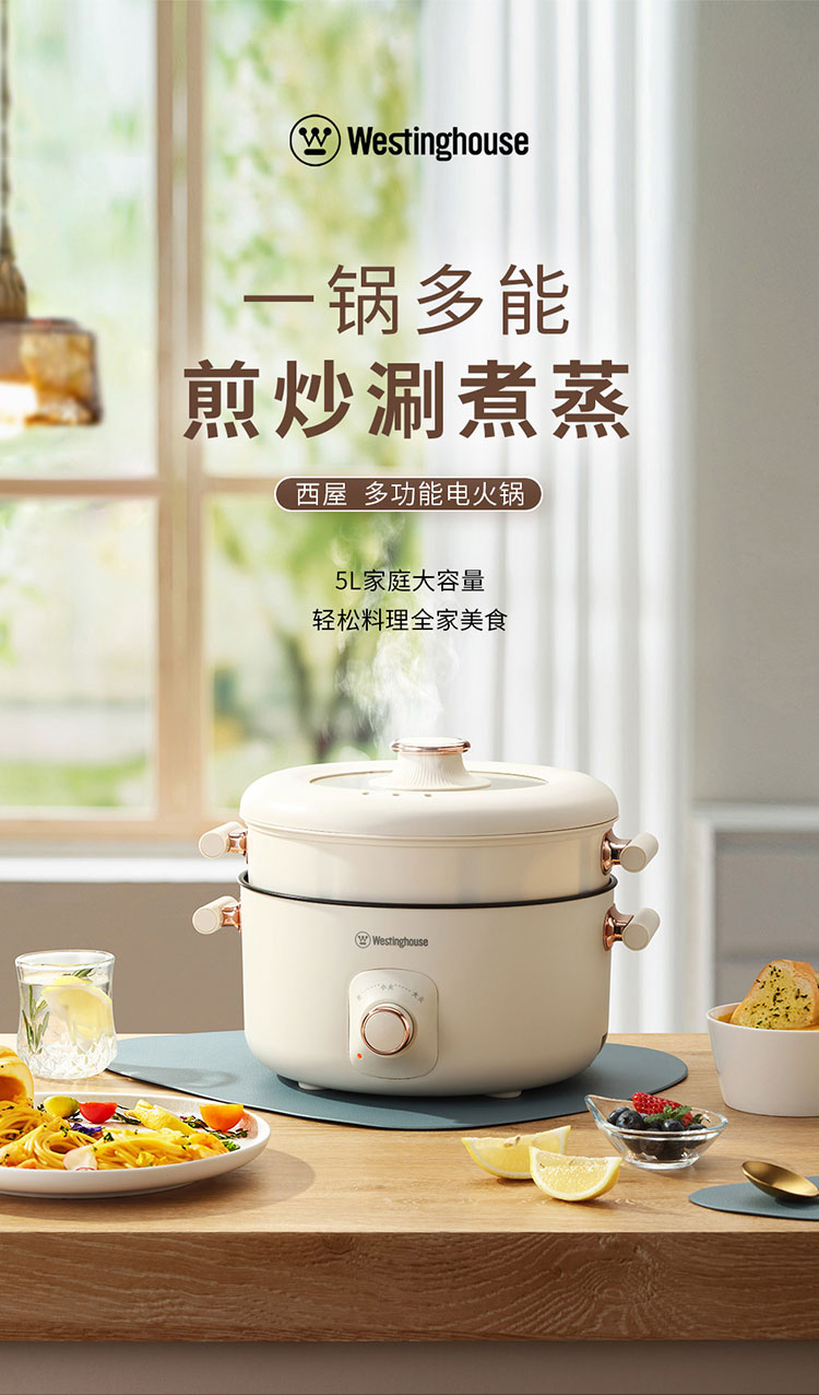 (世星阳光)+WY西屋 多功能电火锅 5L WHG05D 大容量 带蒸笼 一锅多能 上蒸下煮