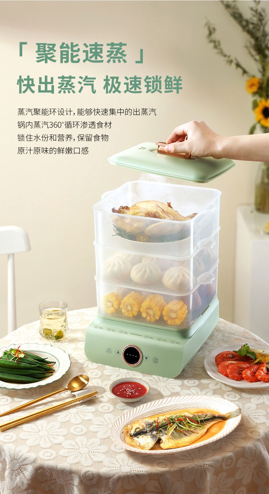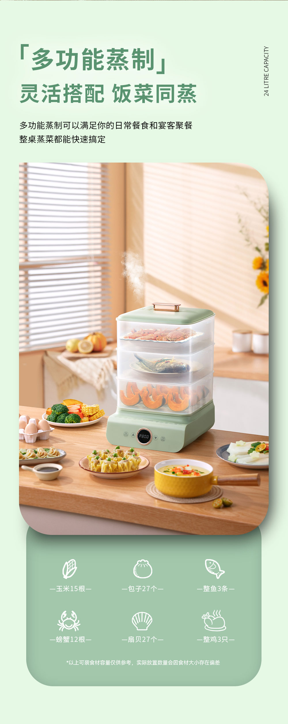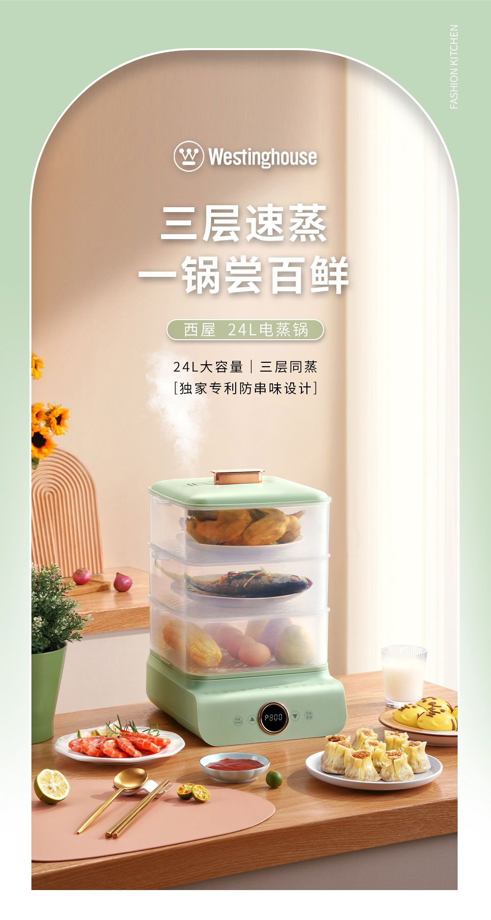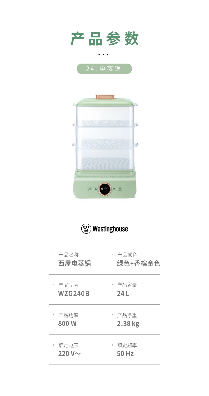 (世星阳光)+WY西屋 蒸锅 24L WZG240B 电蒸锅多功能家用 三层大容量 全自动智能预约