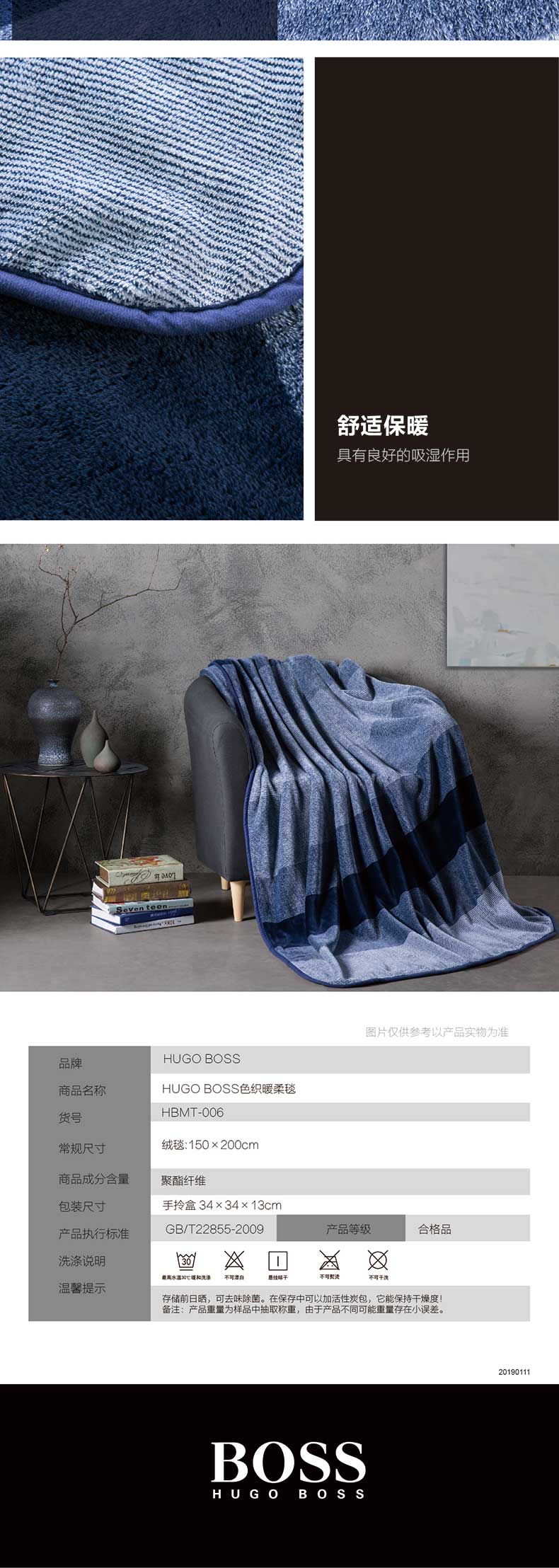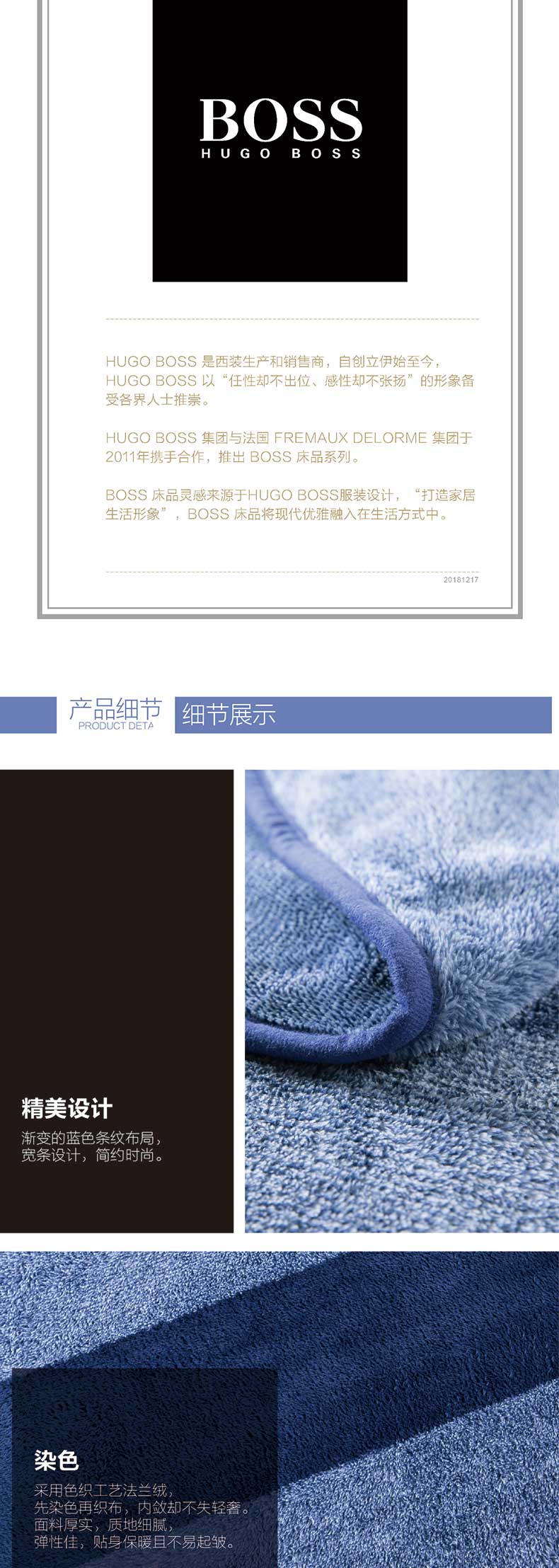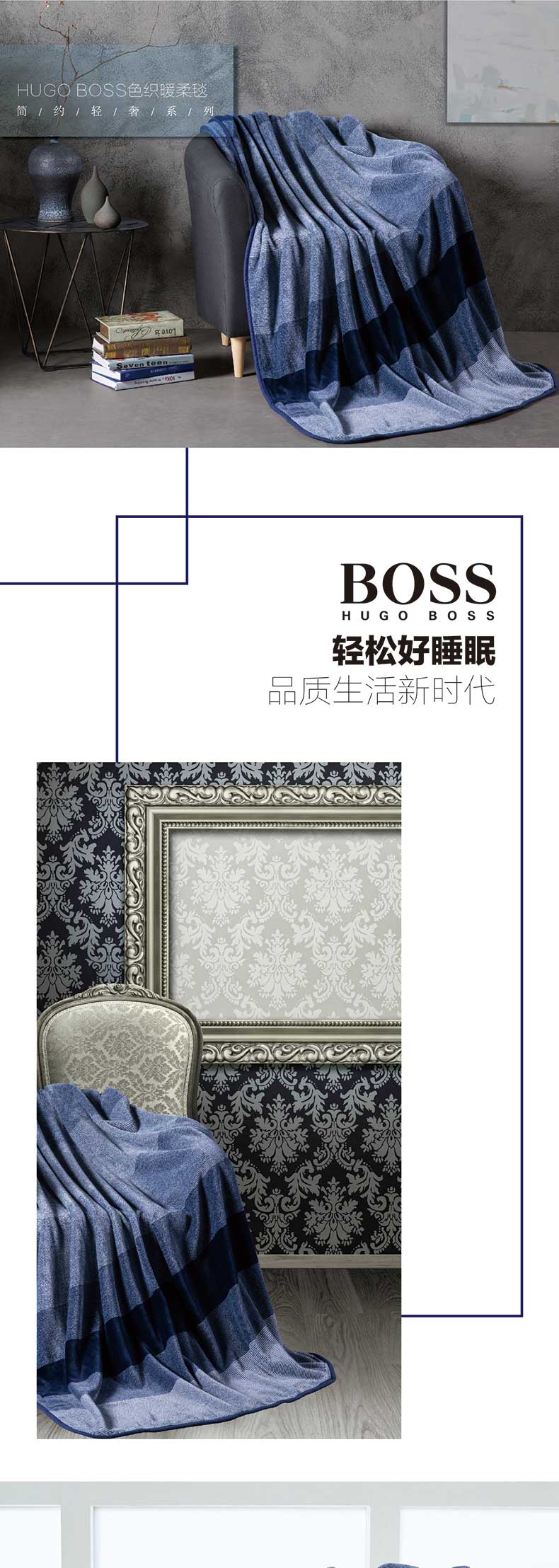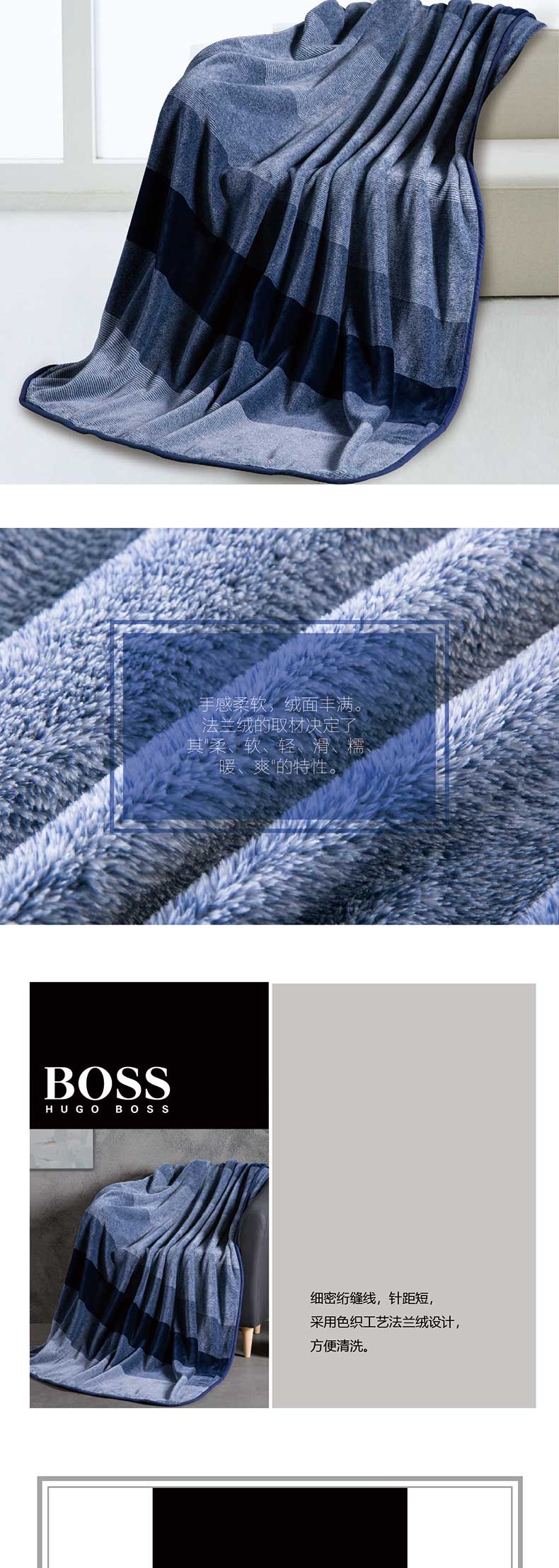 商品名称:(世星阳光)+HUGO BOSS 色织暖柔毯 150*200cm 460g 舒适保暖 具有良好吸湿作用
