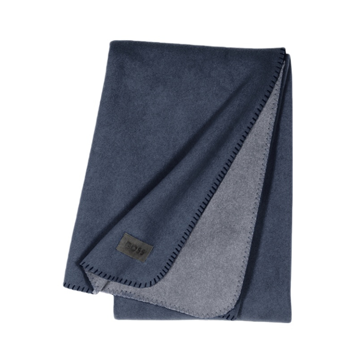(世星阳光)+ HUGO BOSS 靠垫家居毯灰蓝2件套 100*140cm 双面毯