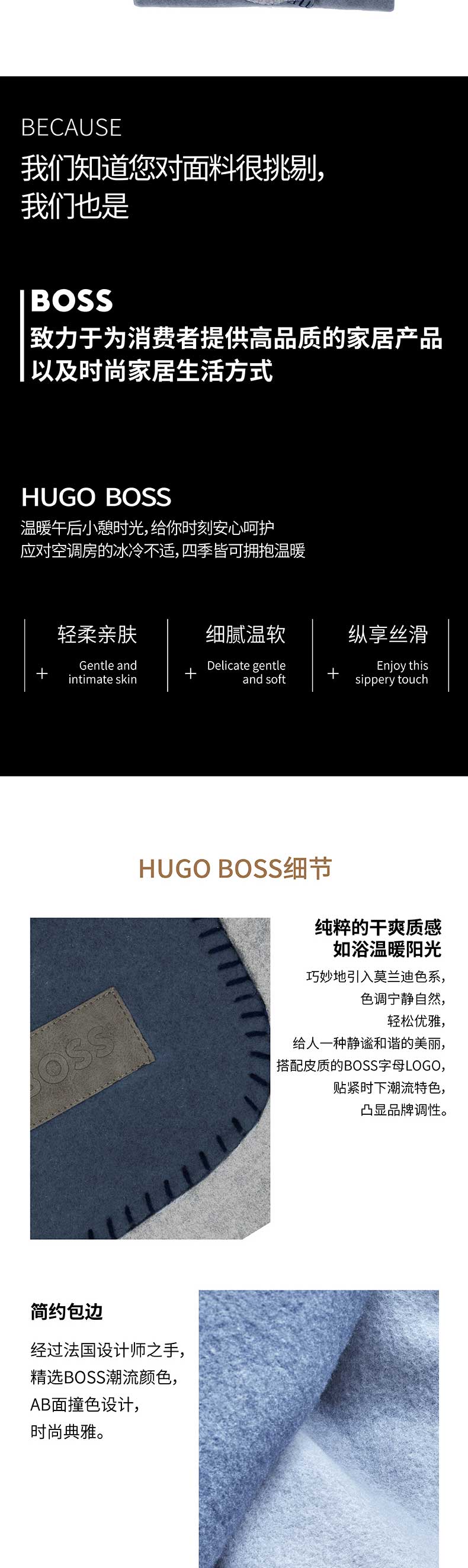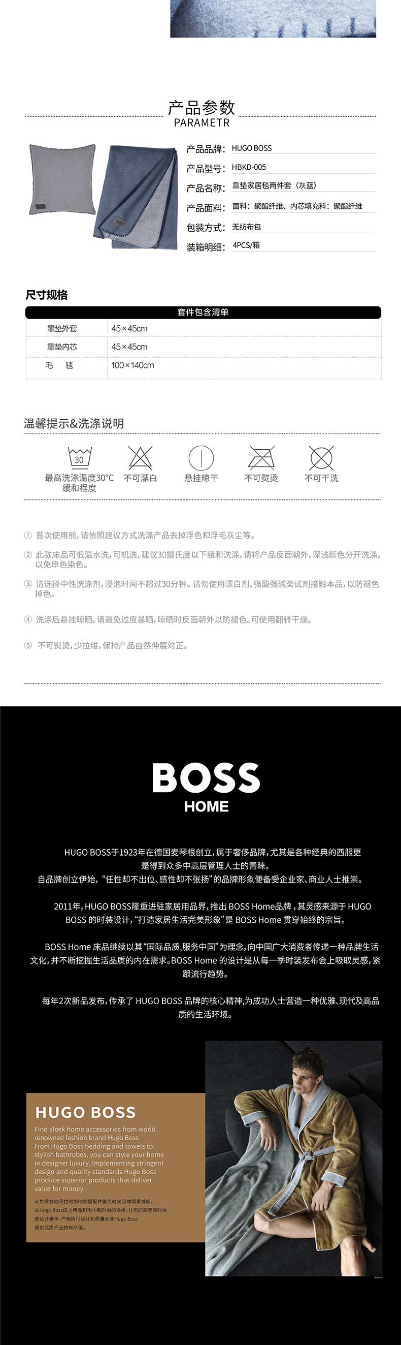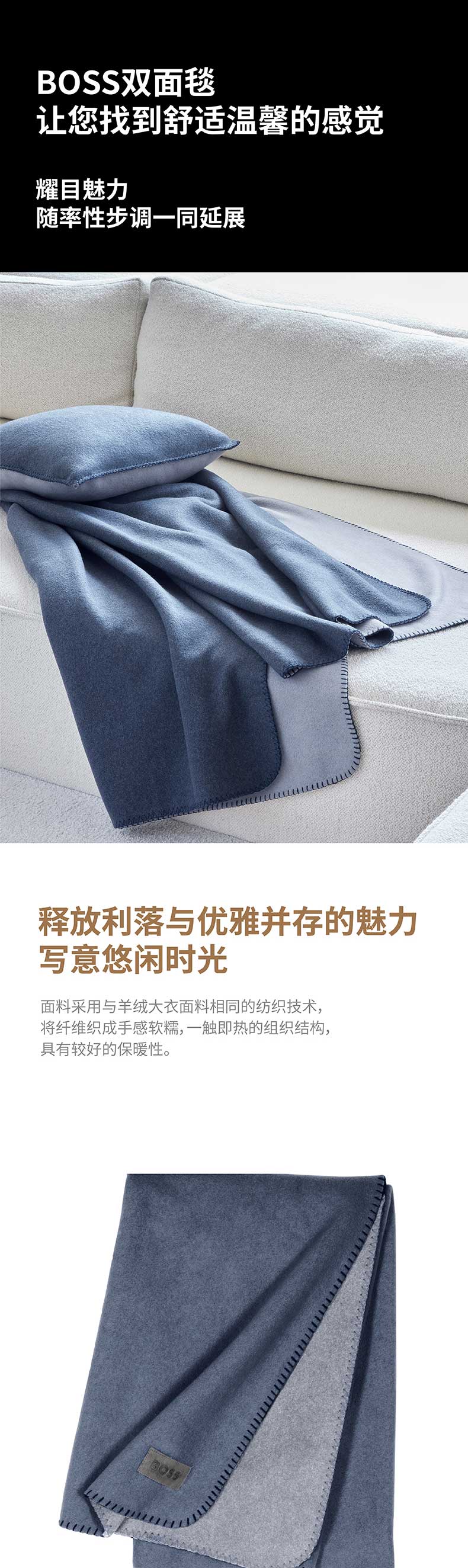 商品名称:(世星阳光)+ HUGO BOSS 靠垫家居毯灰蓝2件套 100*140cm 双面毯