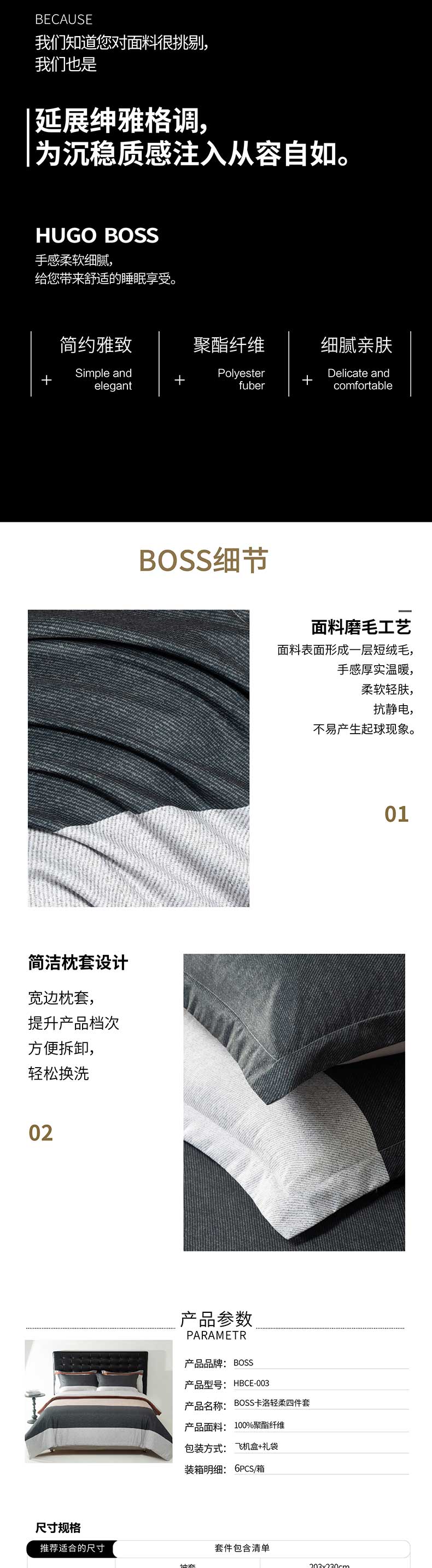 商品名称:(世星阳光)+ BOSS 卡洛轻柔四件套 203*230cm 手感厚实温暖 柔软轻肤抗静电 不易产生起球