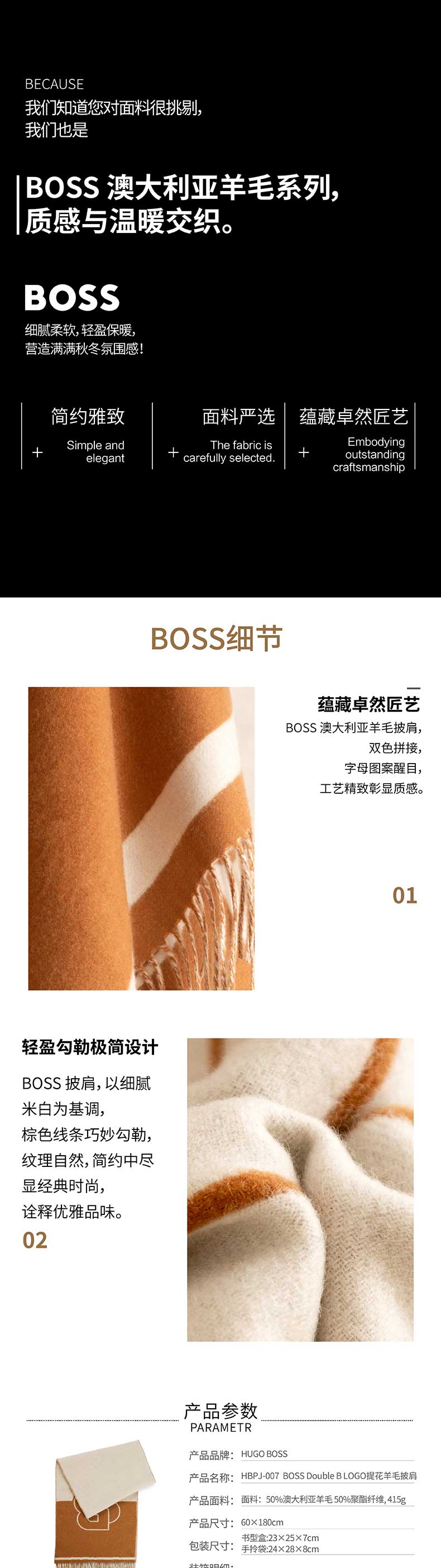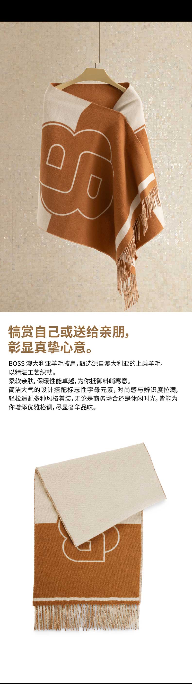 商品名称:(世星阳光)+ HUGO BOSS 提花羊毛披肩 60*180cm 415g 澳大利亚羊毛 以精湛工艺织就