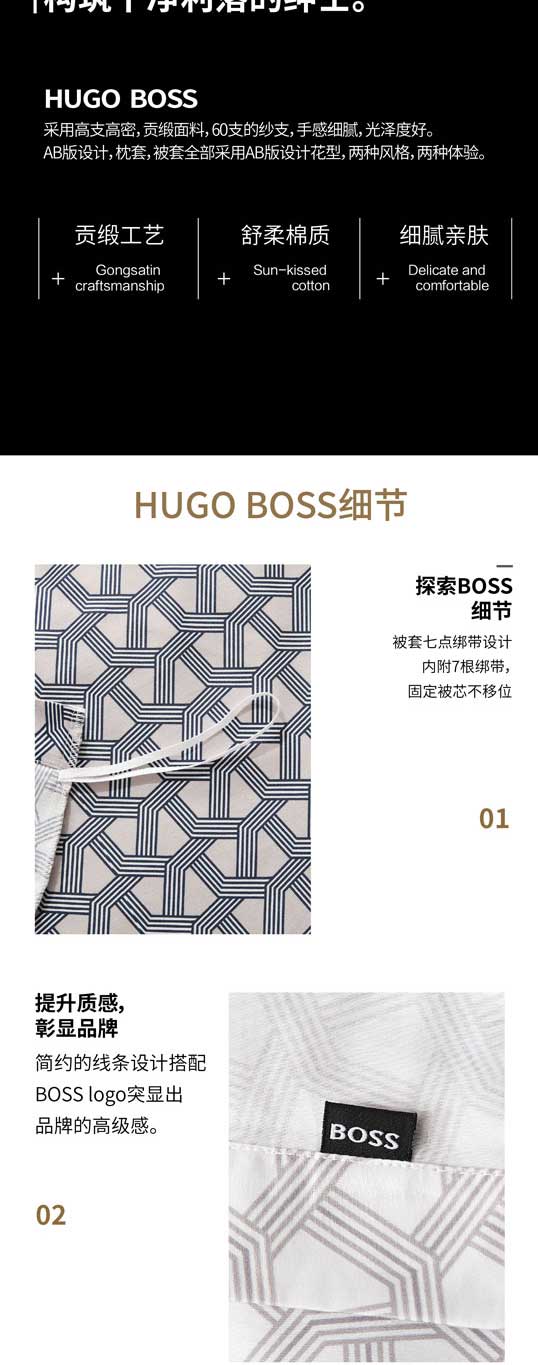(世星阳光)+ HUGO BOSS 贡缎四件套203×230cm 内附7根绑带 固定被芯不移位
