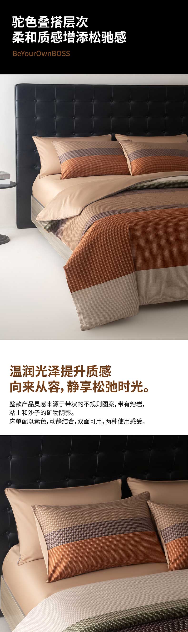 (世星阳光)+ HUGO BOSS 玄武岩贡缎印花四件套 203×230cm 采用优良的全棉贡缎面料 拥有比常规斜纹更高的密度 双面可用