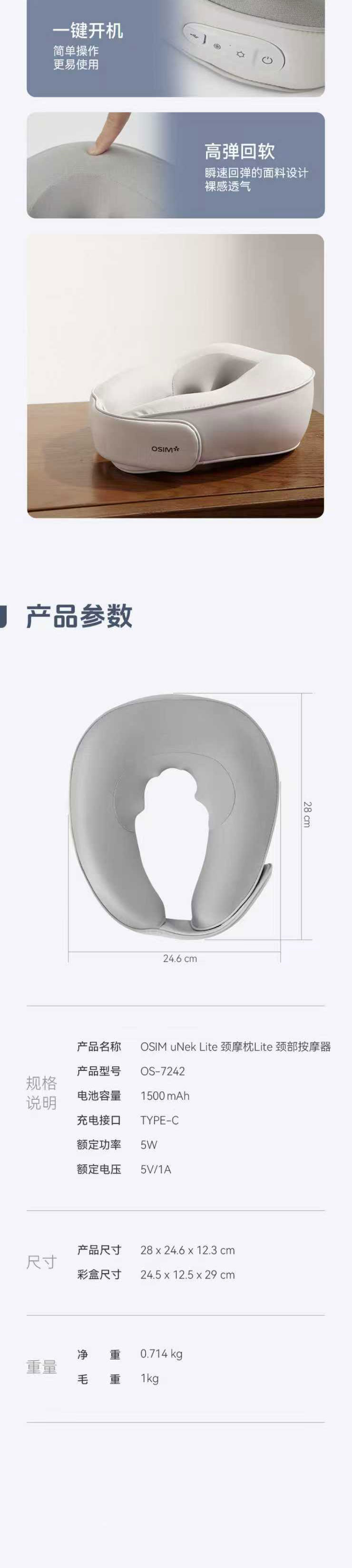 商品名称:(世星阳光)+傲胜颈部按摩器颈摩枕 OS-7242多重多部位按摩 热敷放松 无线便携