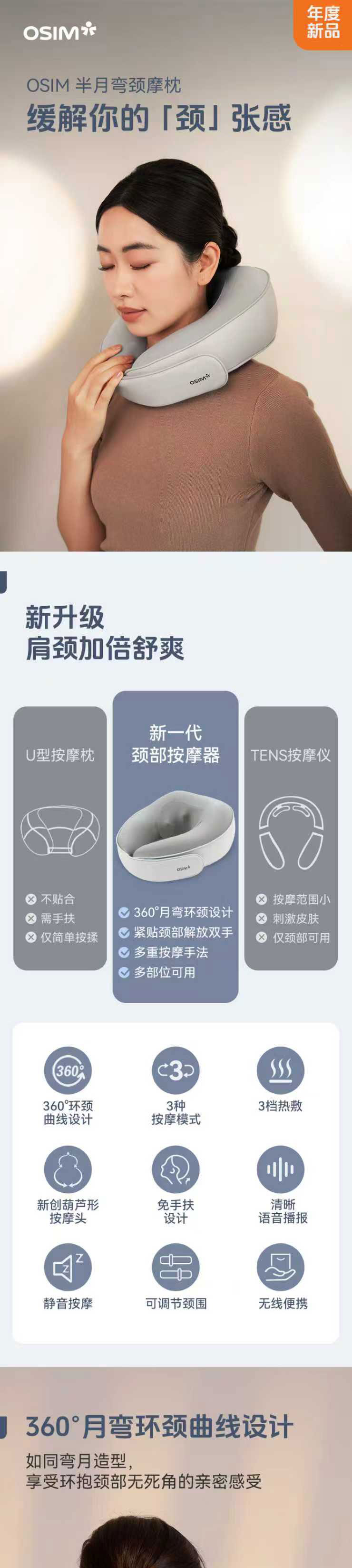 (世星阳光)+傲胜颈部按摩器颈摩枕 OS-7242多重多部位按摩 热敷放松 无线便携