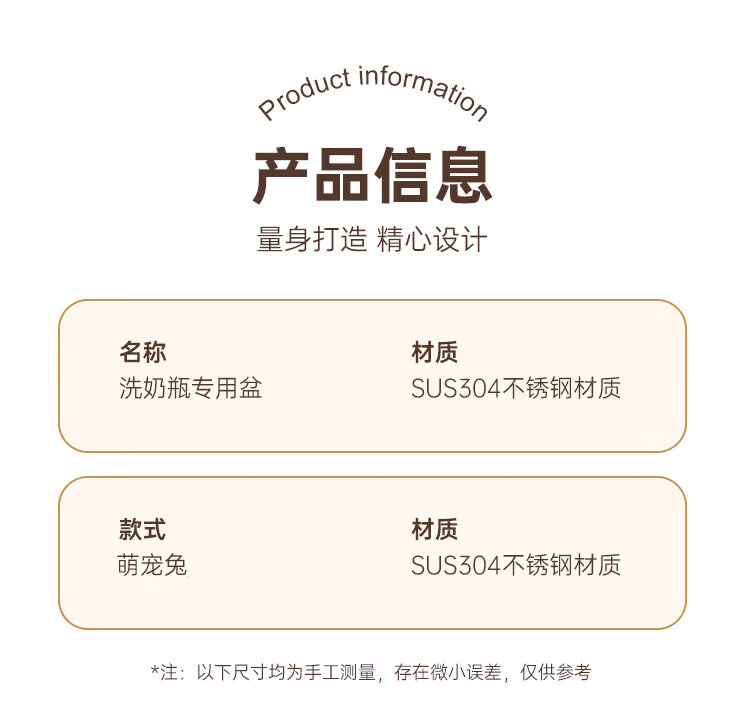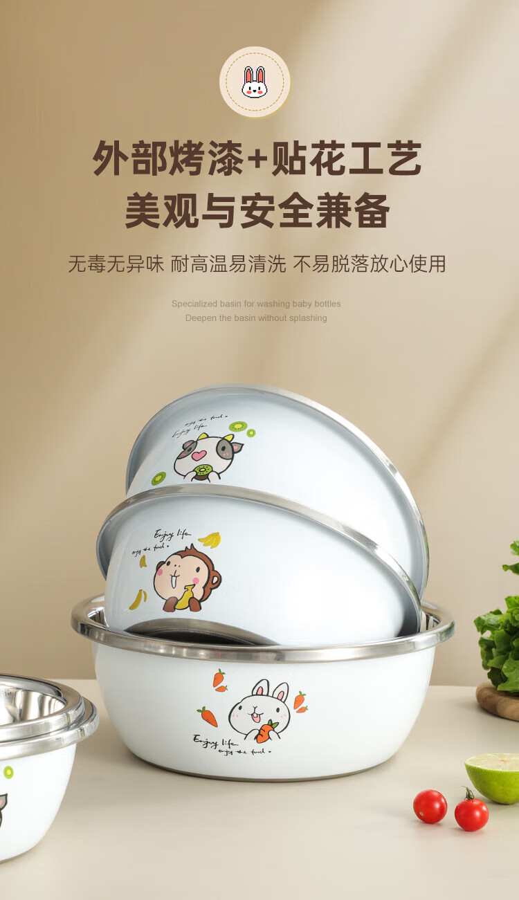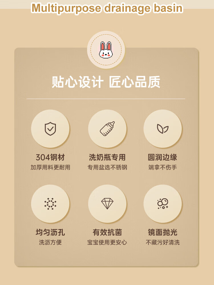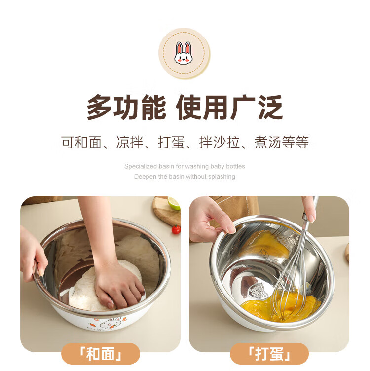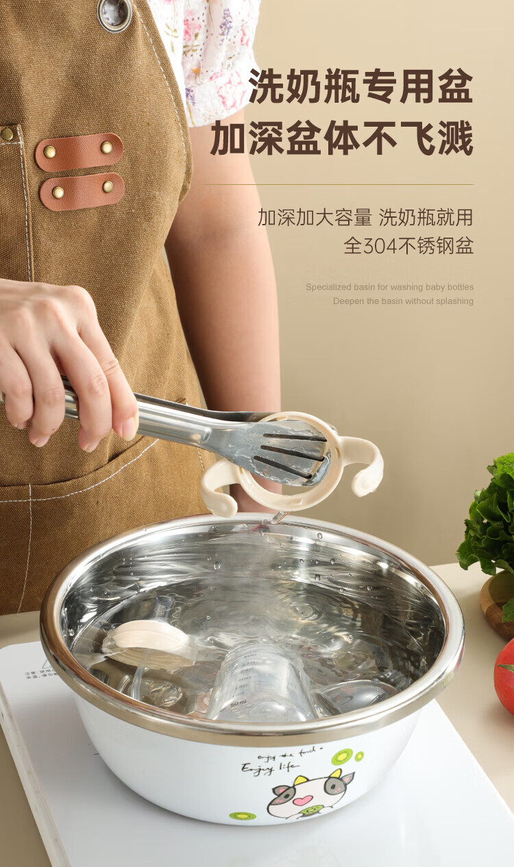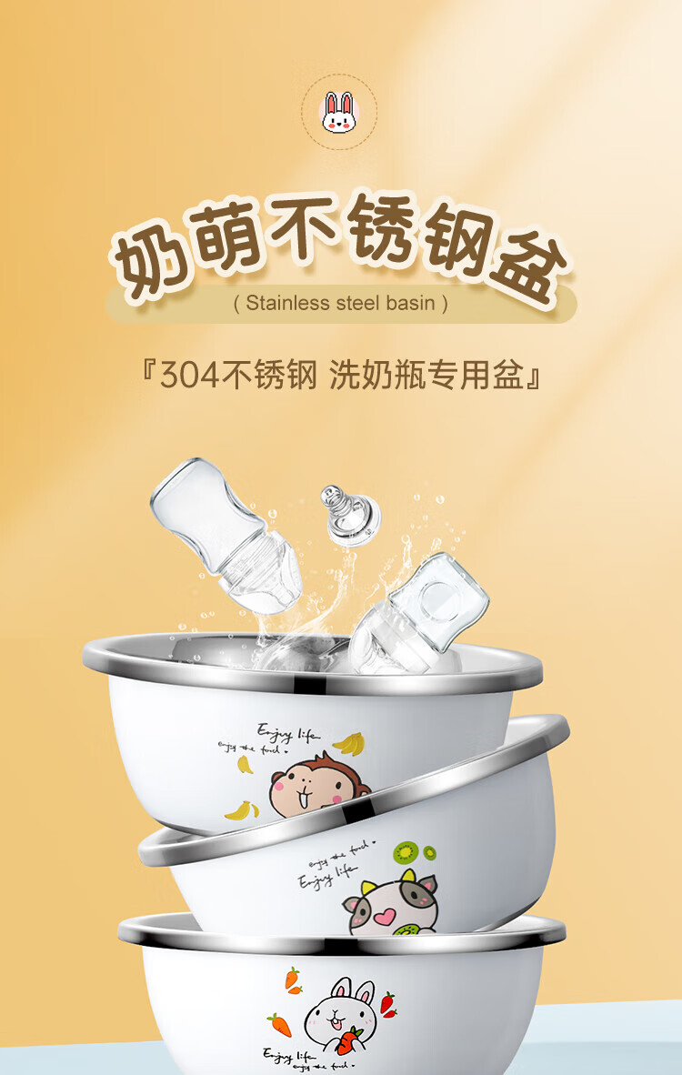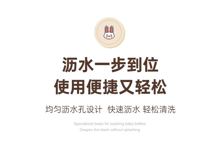 (巨邦佑)BJ+物芯质造304炫彩调料缸28cm (萌宠兔) 洗奶瓶专用有效抗菌