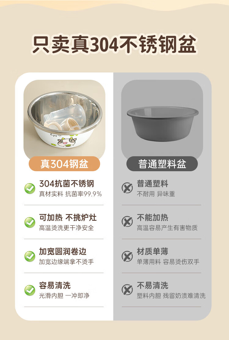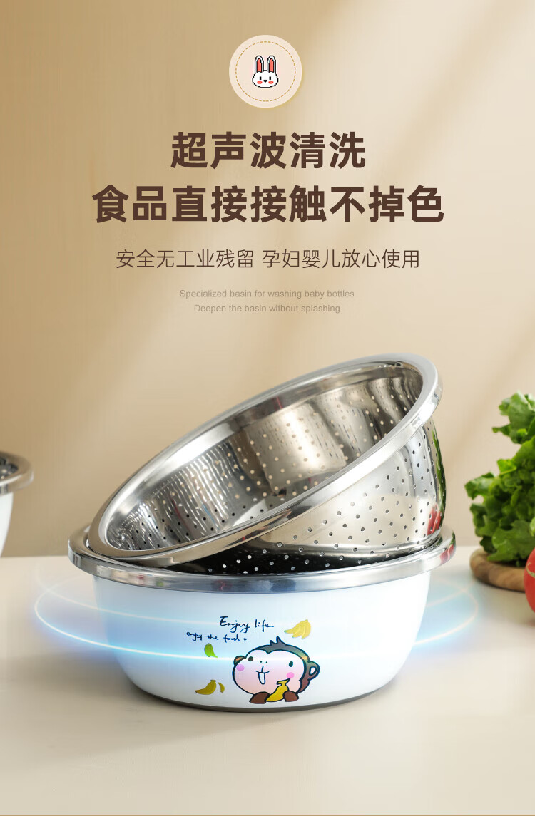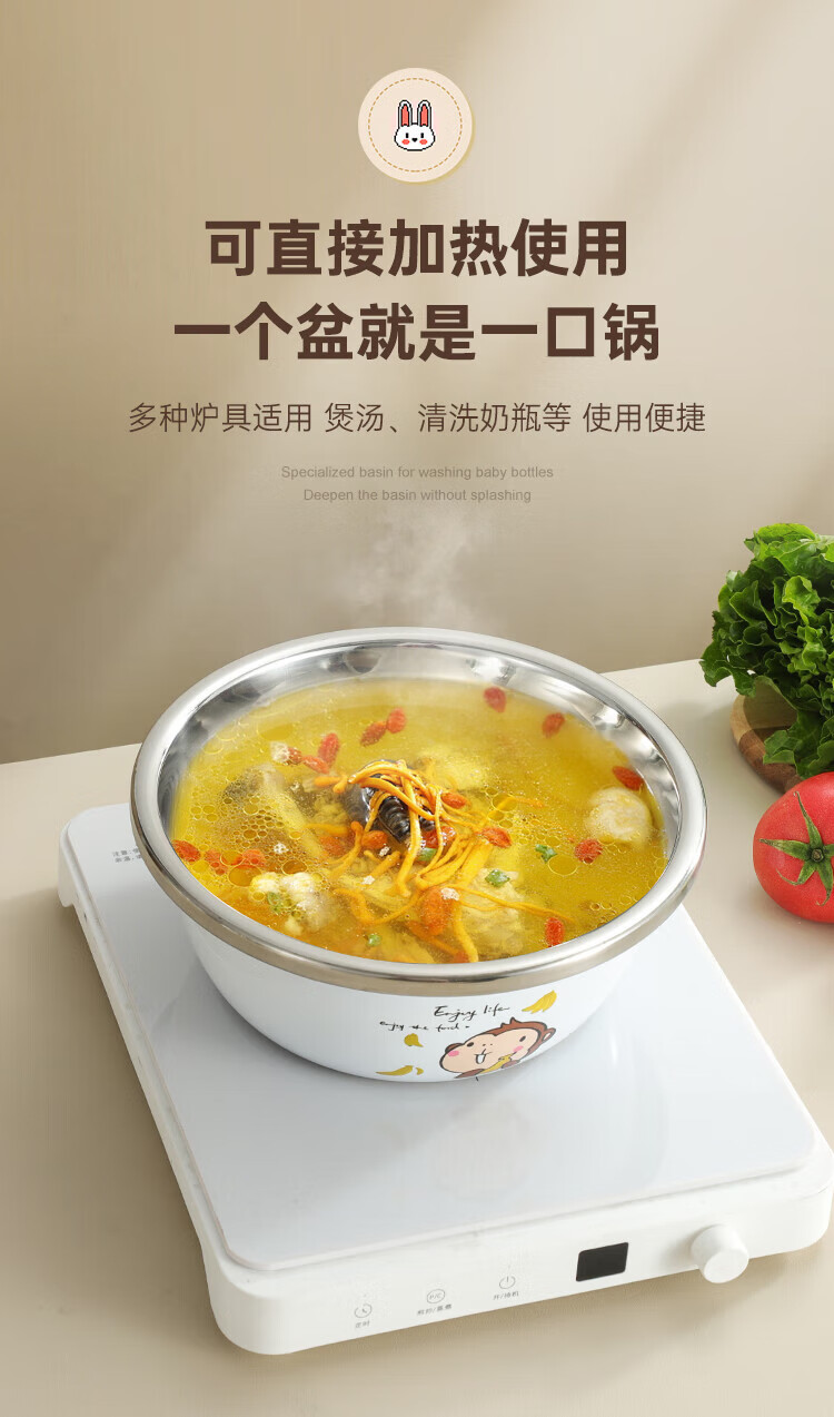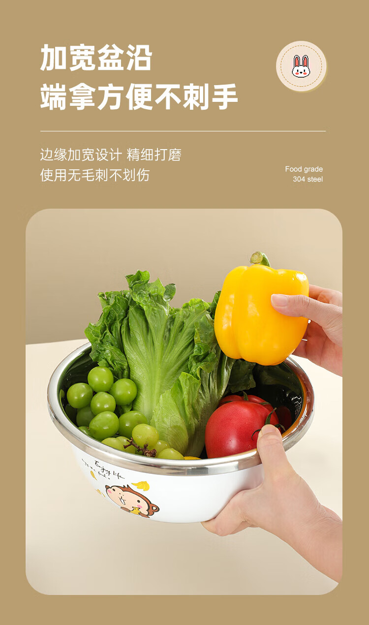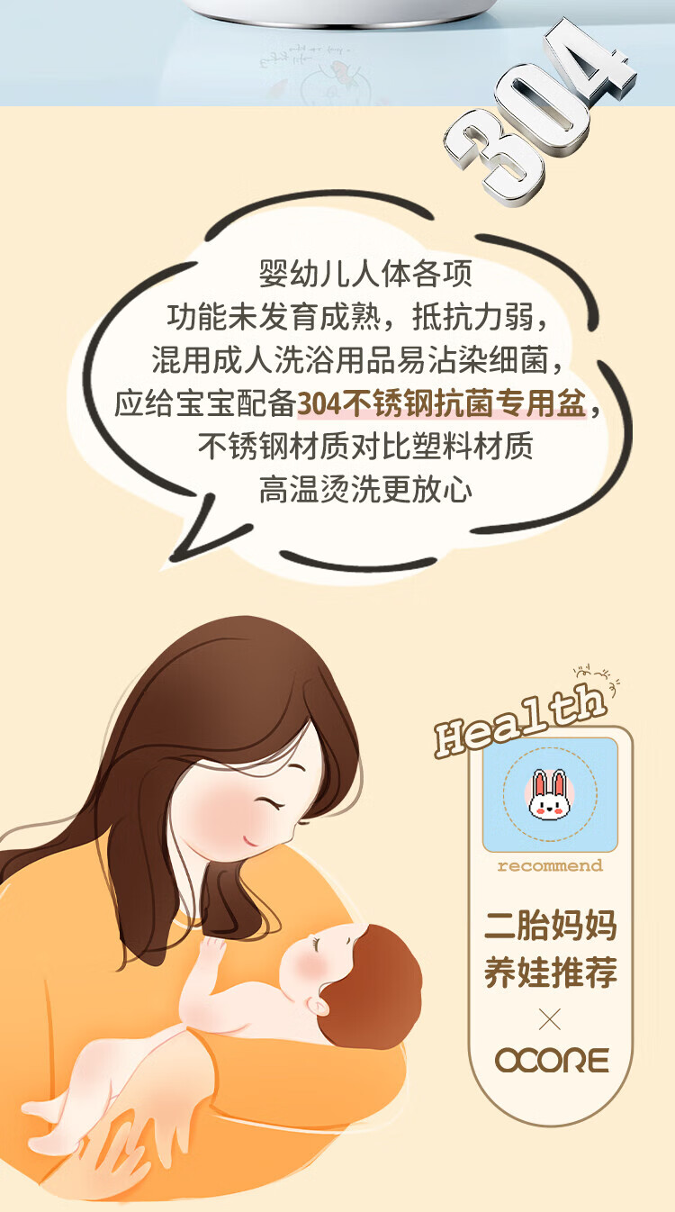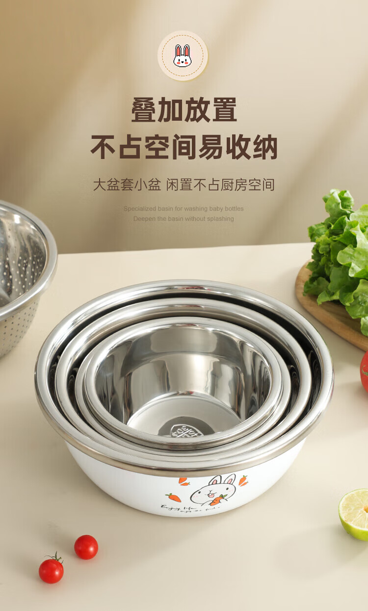 (巨邦佑)BJ+物芯质造304炫彩调料缸28cm (萌宠兔) 洗奶瓶专用有效抗菌