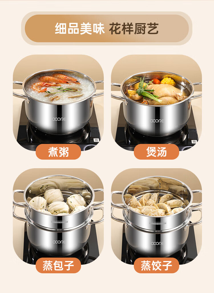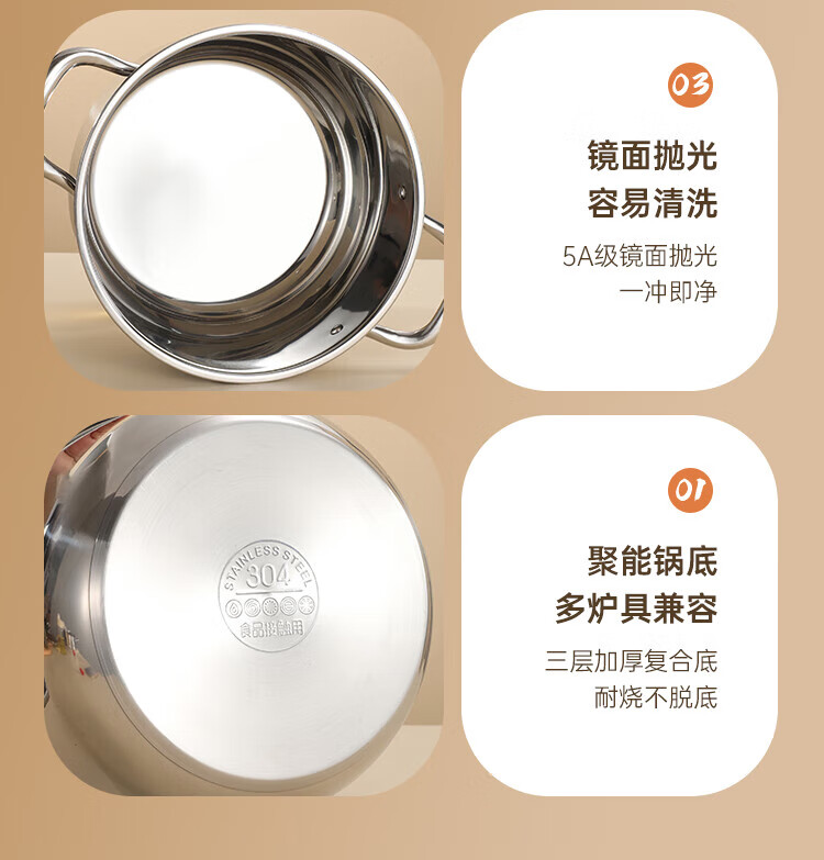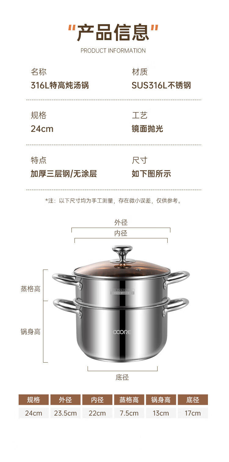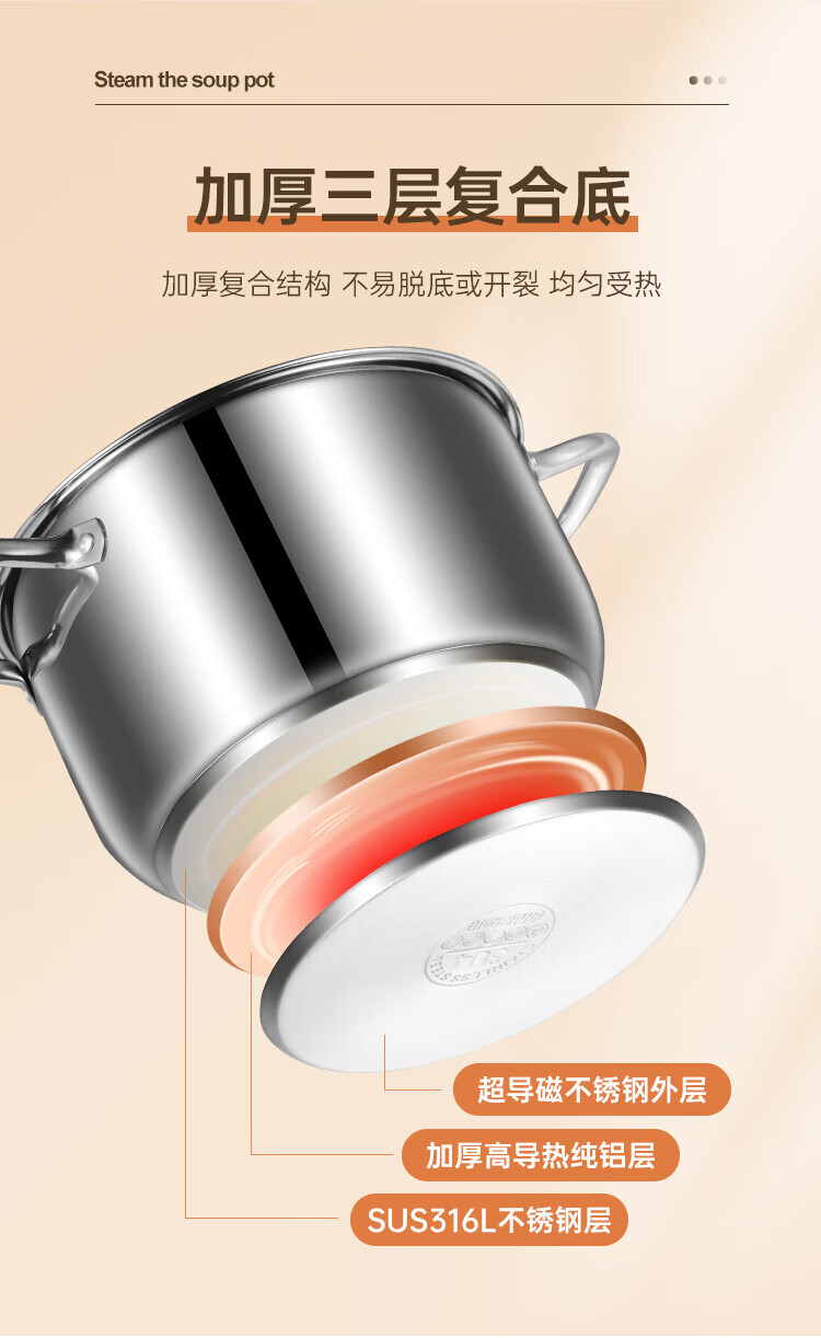 商品名称:(巨邦佑)BJ+物芯质造316L特高炖汤锅24cm Smart全钢弧形汤蒸锅带蒸格 蒸煮同步加厚3层钢不挑炉灶