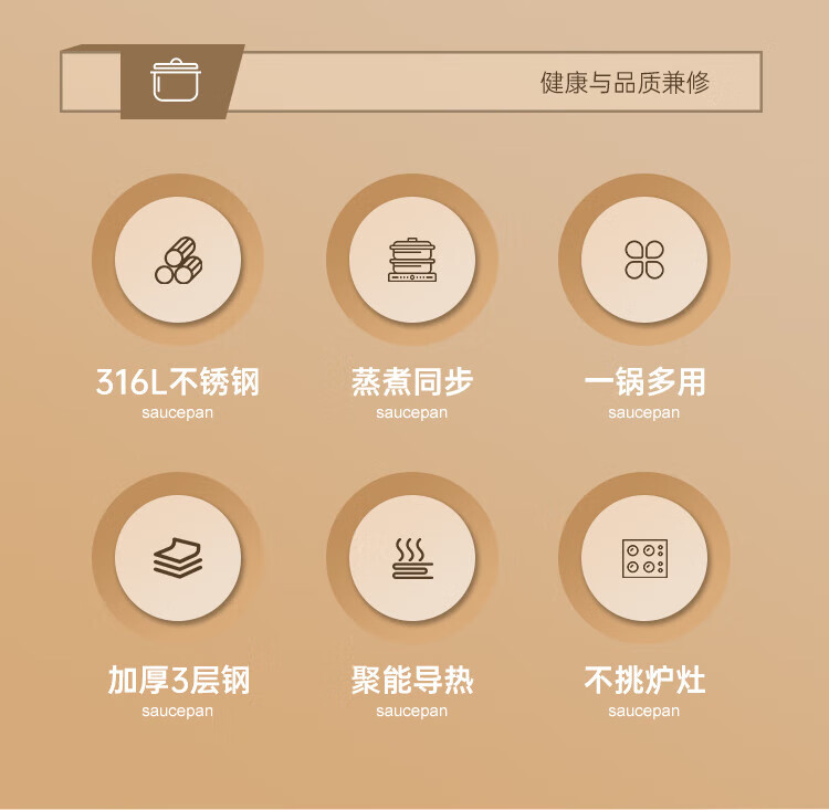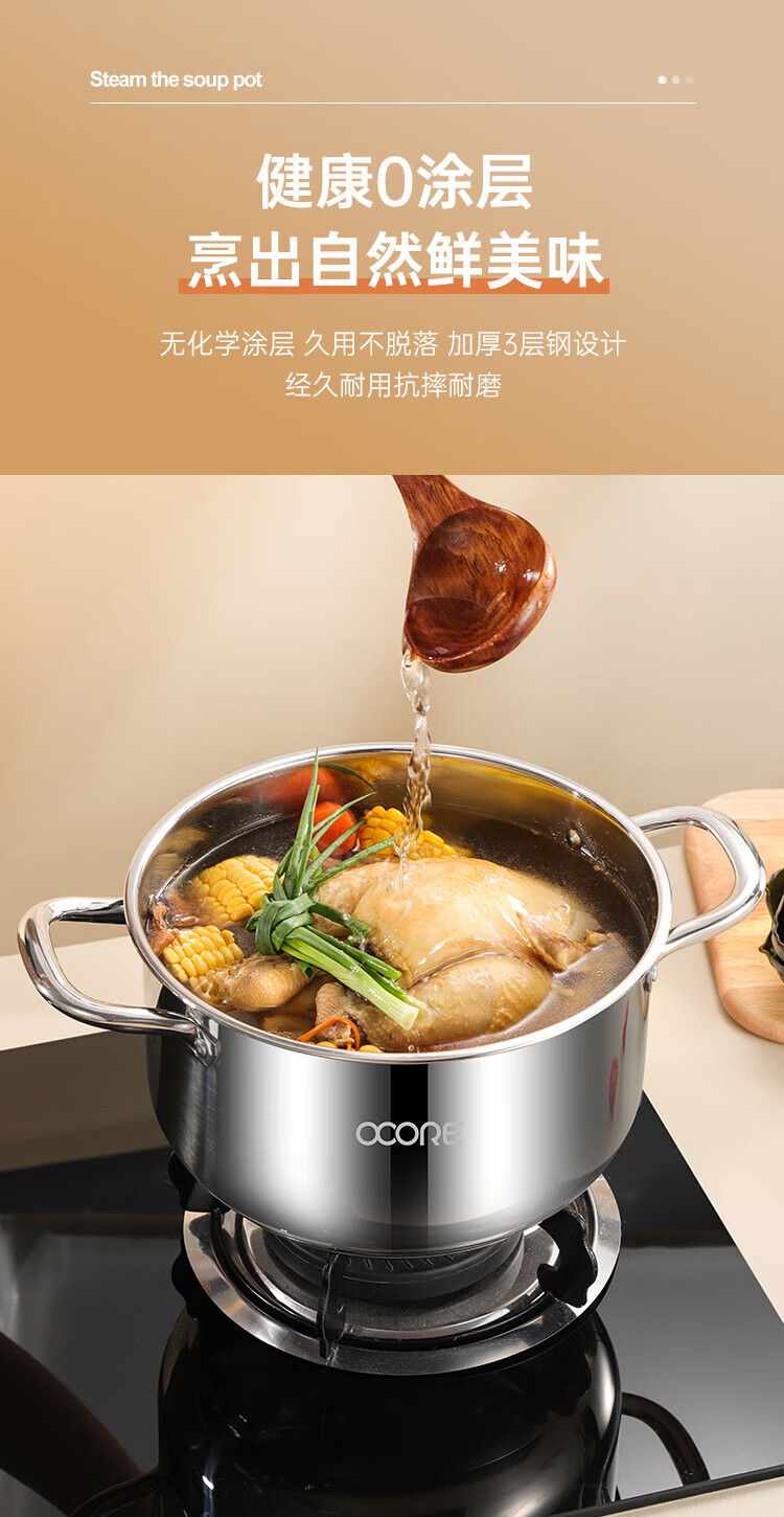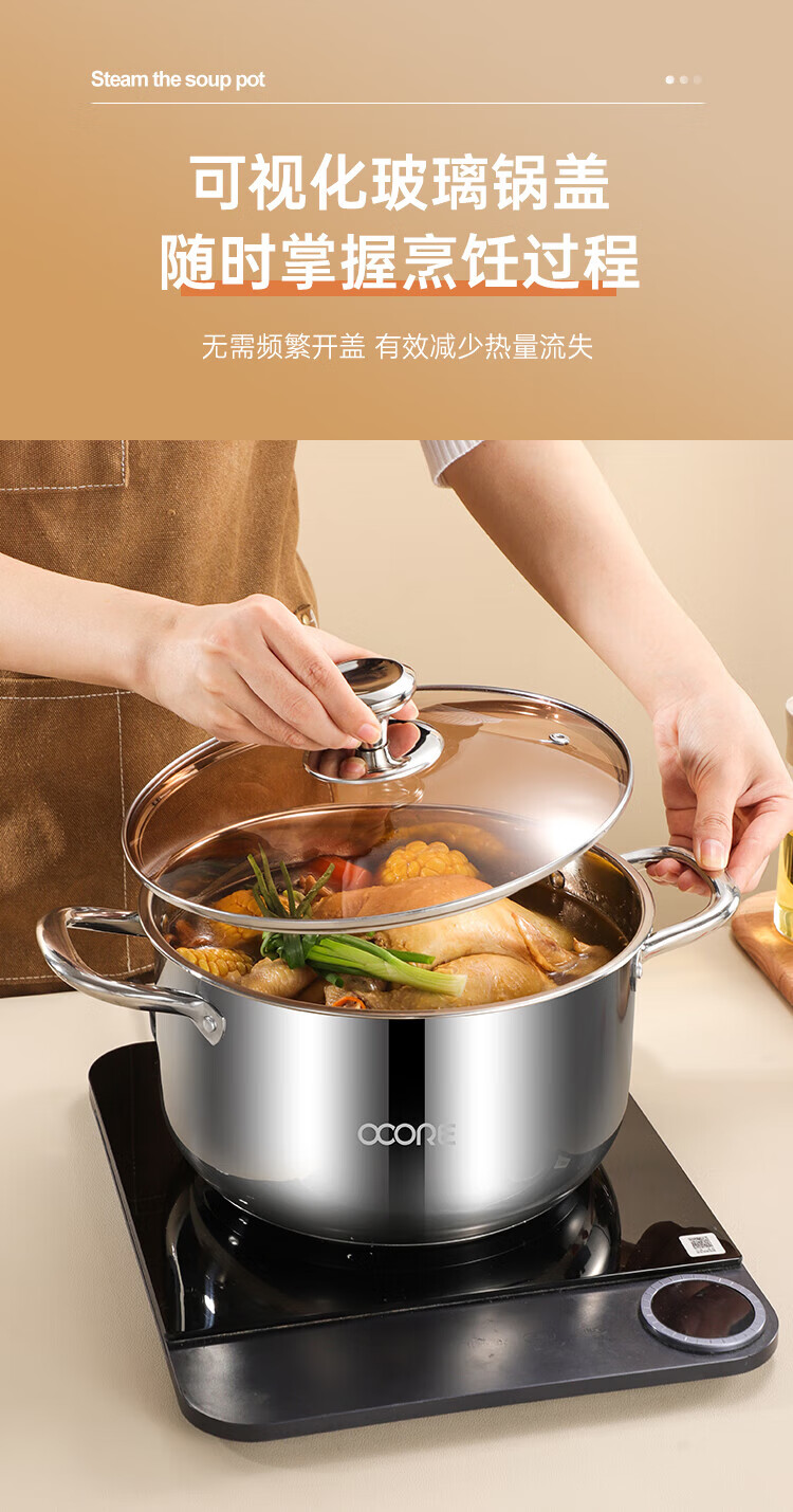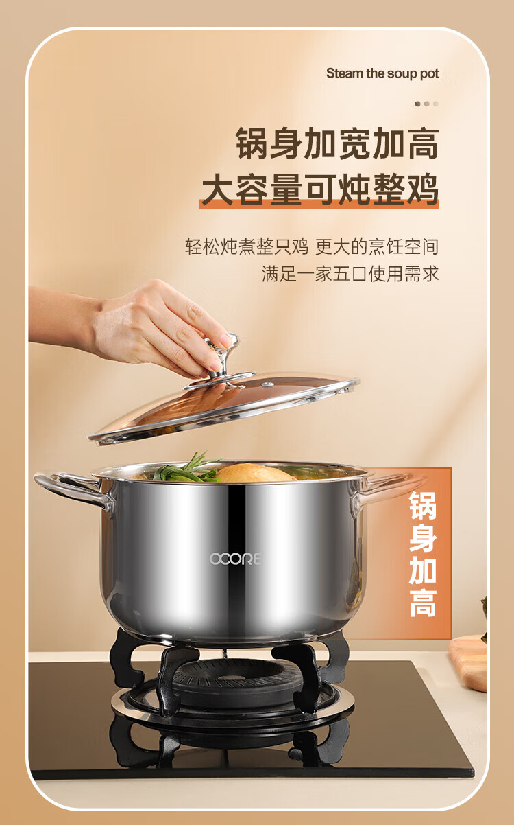 商品名称:(巨邦佑)BJ+物芯质造316L特高炖汤锅24cm Smart全钢弧形汤蒸锅带蒸格 蒸煮同步加厚3层钢不挑炉灶