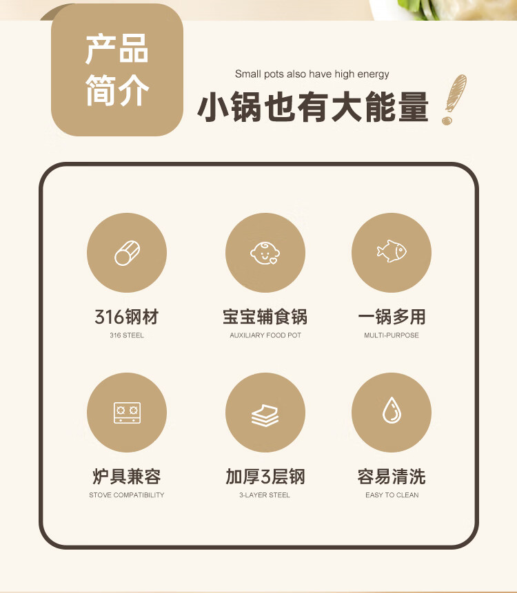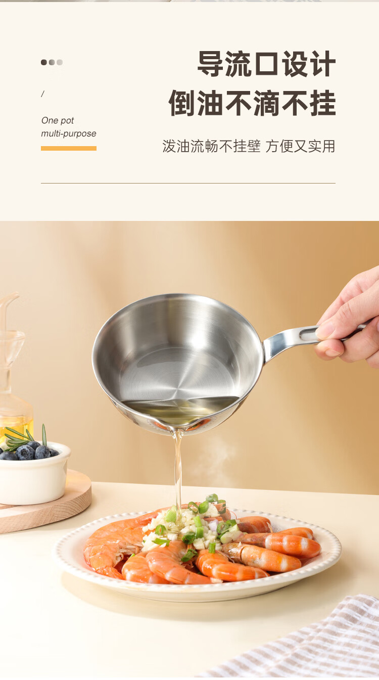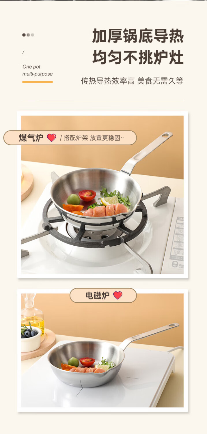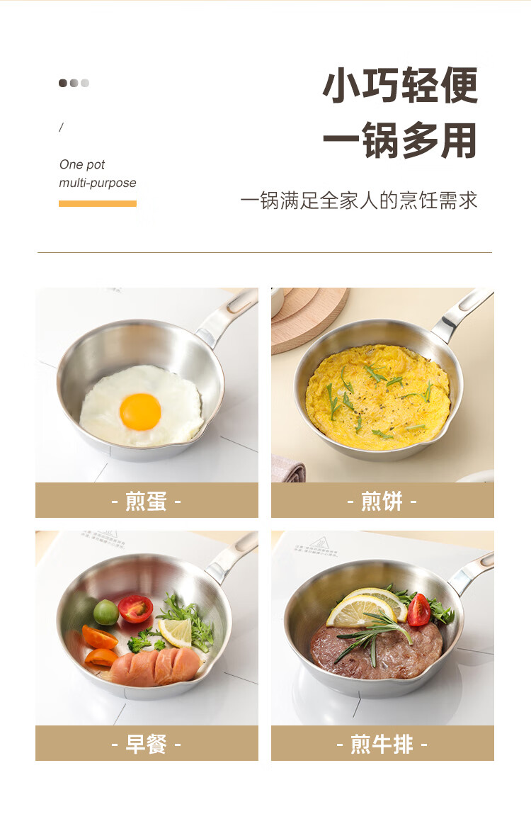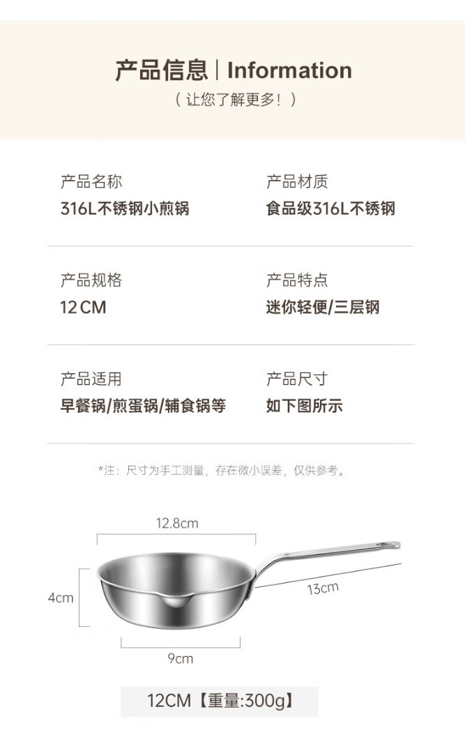 商品名称:(巨邦佑)BJ+物芯质造316L不锈钢小煎锅12cm 加厚锅底导热不挑炉灶加长全钢手柄设计隔热防烫