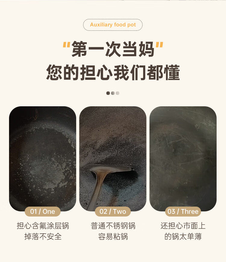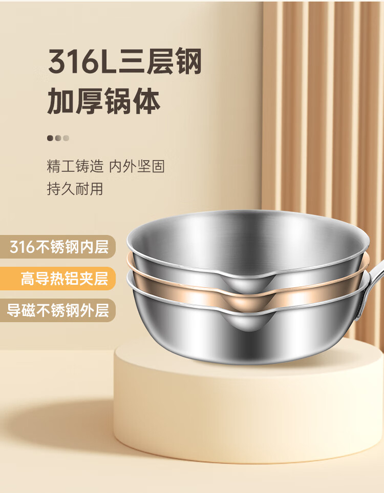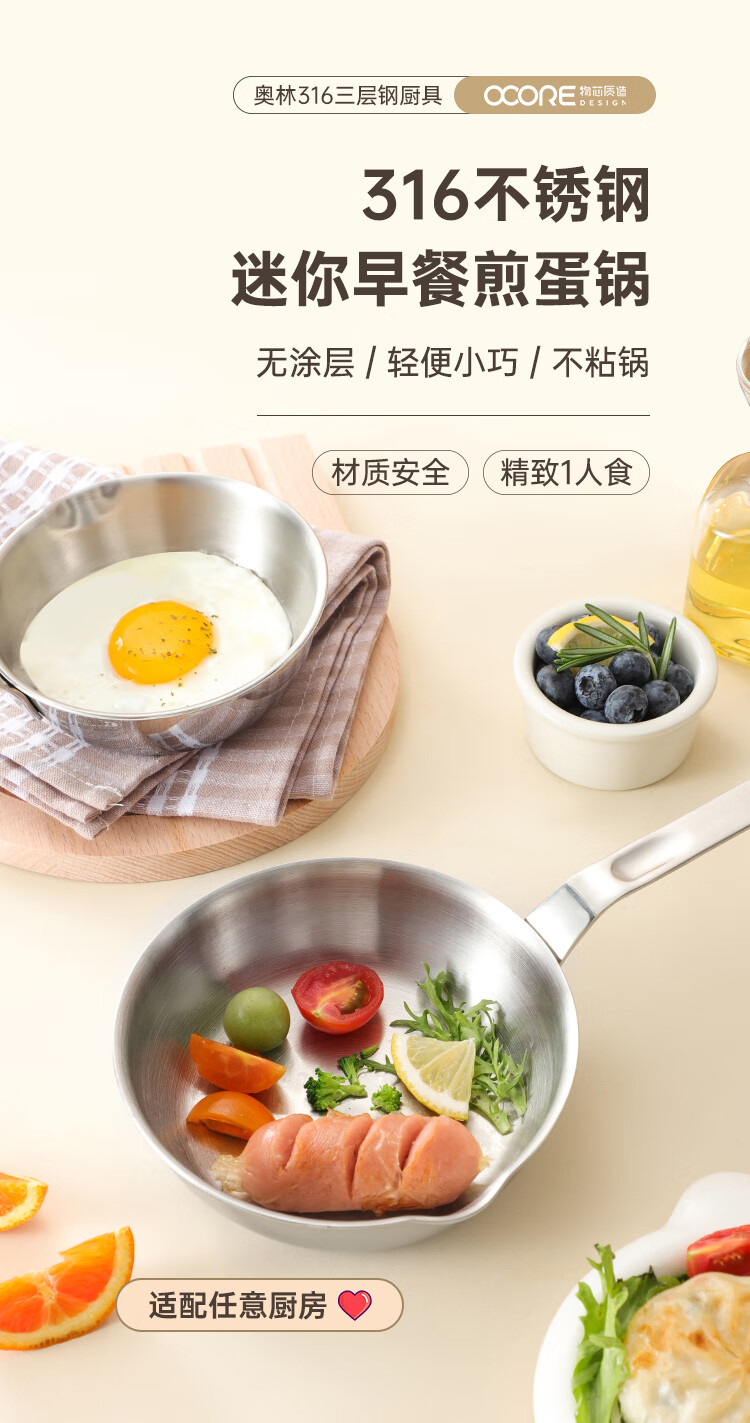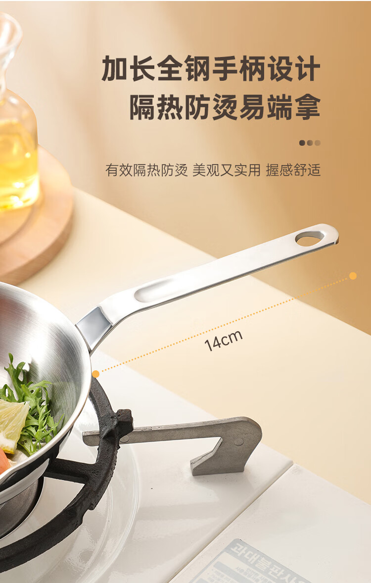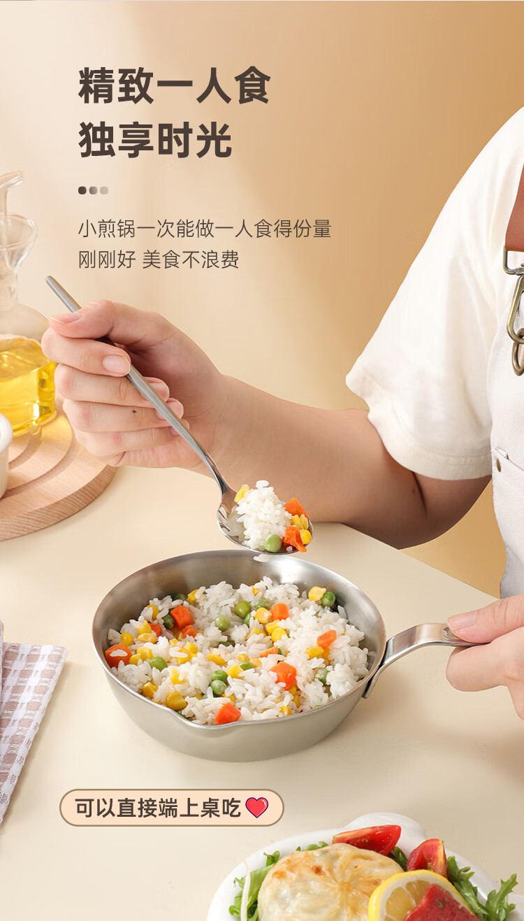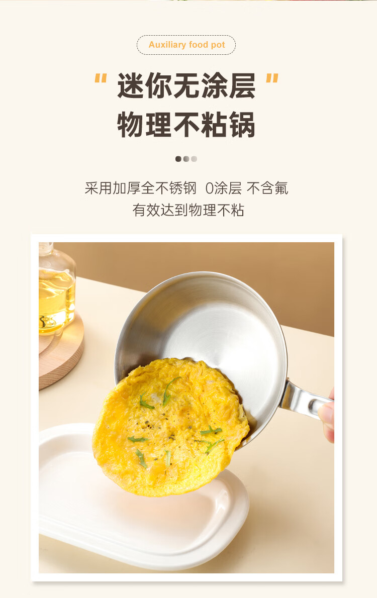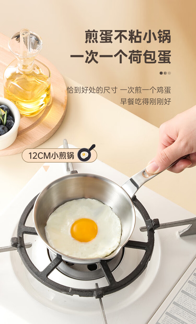 (巨邦佑)BJ+物芯质造316L不锈钢小煎锅12cm 加厚锅底导热不挑炉灶加长全钢手柄设计隔热防烫