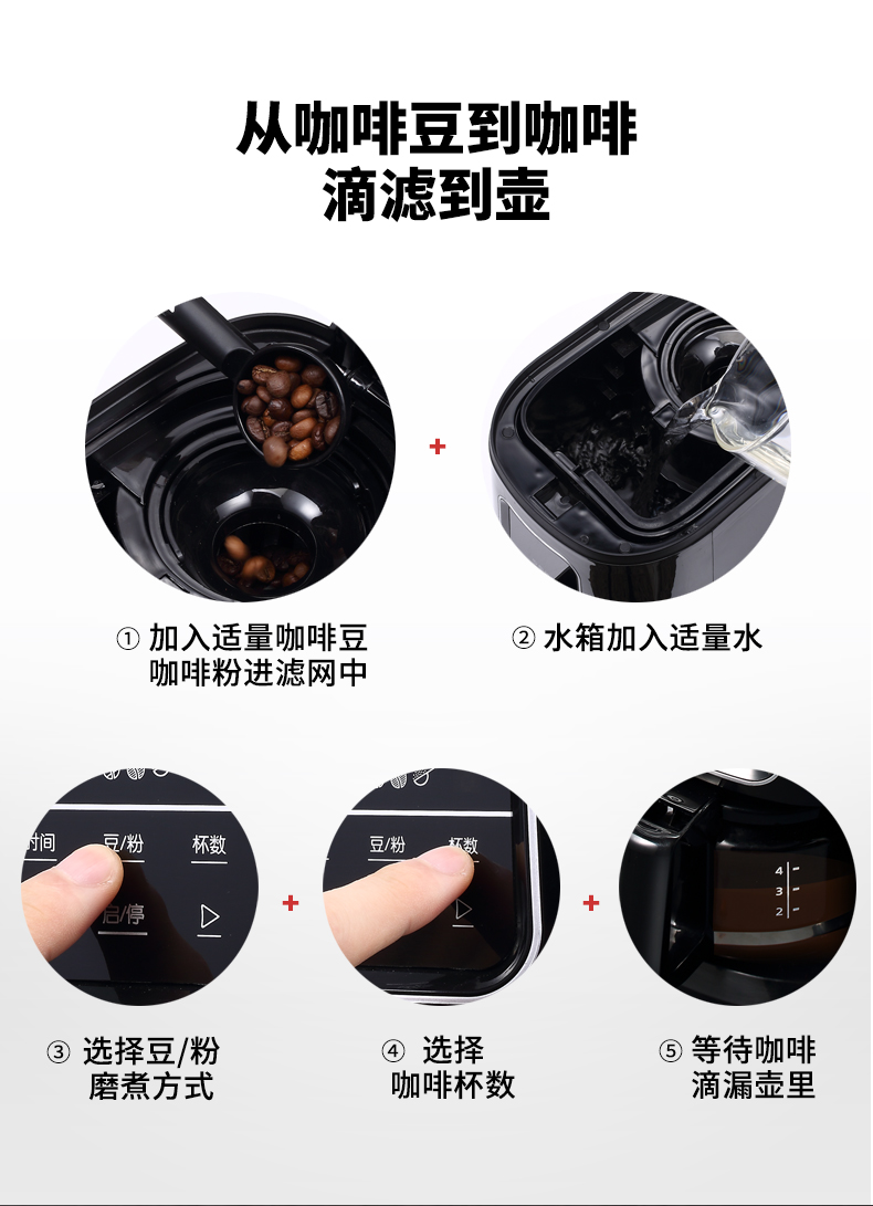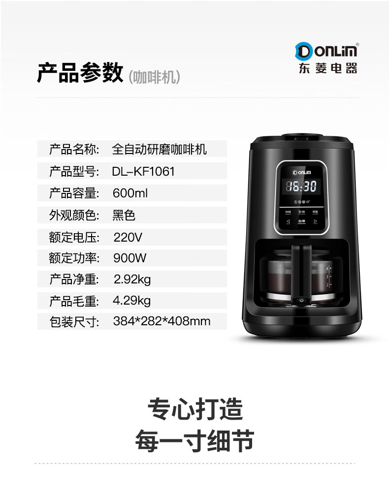 商品名称:(巨邦佑)BJ+东菱(Donlim)全自动咖啡机DL-KF1061 现磨美式小型滴漏式智能一体机办公室意式浓缩 全自动