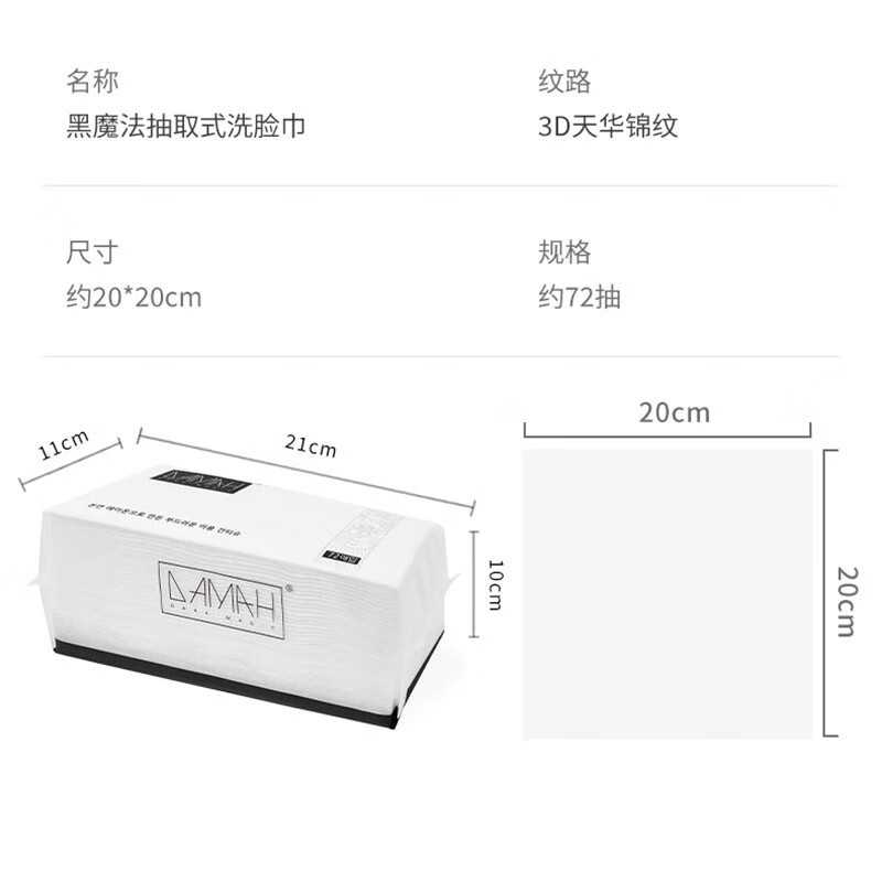 商品名称:(巨邦佑)R+黑魔法洗脸巾72抽*3包 一次性面巾 纸洁面巾 擦脸巾 抽取式