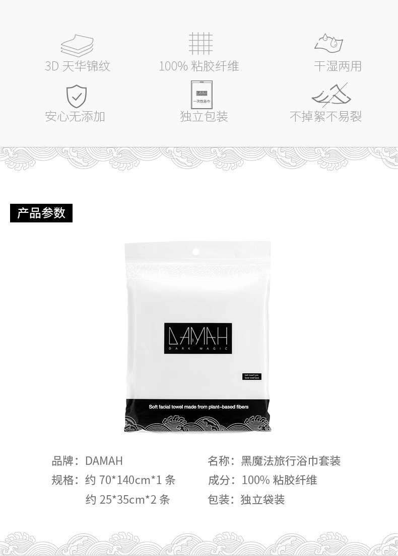 商品名称:(巨邦佑)R+黑魔法一次性旅行套3包 加厚酒店洗脸巾 便携(毛巾*2+浴巾*1)